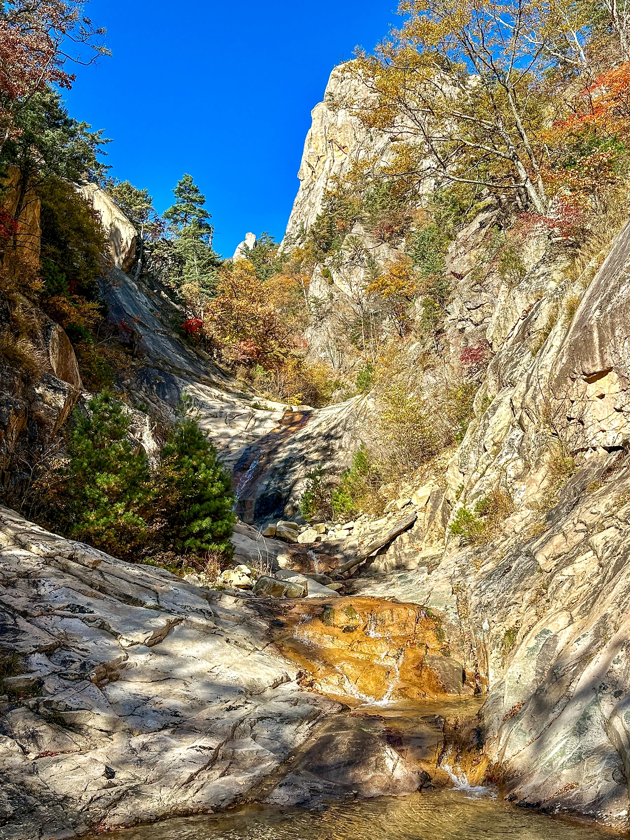 나중에 만난 산악인 출신 택시기사님의 말로는 국공이 폭포 상단의 하강용 볼트마저 제거하려다 말았다고 한다. 정규 탐방로 아닌 곳에 온 벌로 아예 죽으란 소리랑 비슷한 것 같은데 그렇게까지 하는 이유가, 그런 생각을 하는 이유가 대체 무엇인지 모르겠다.