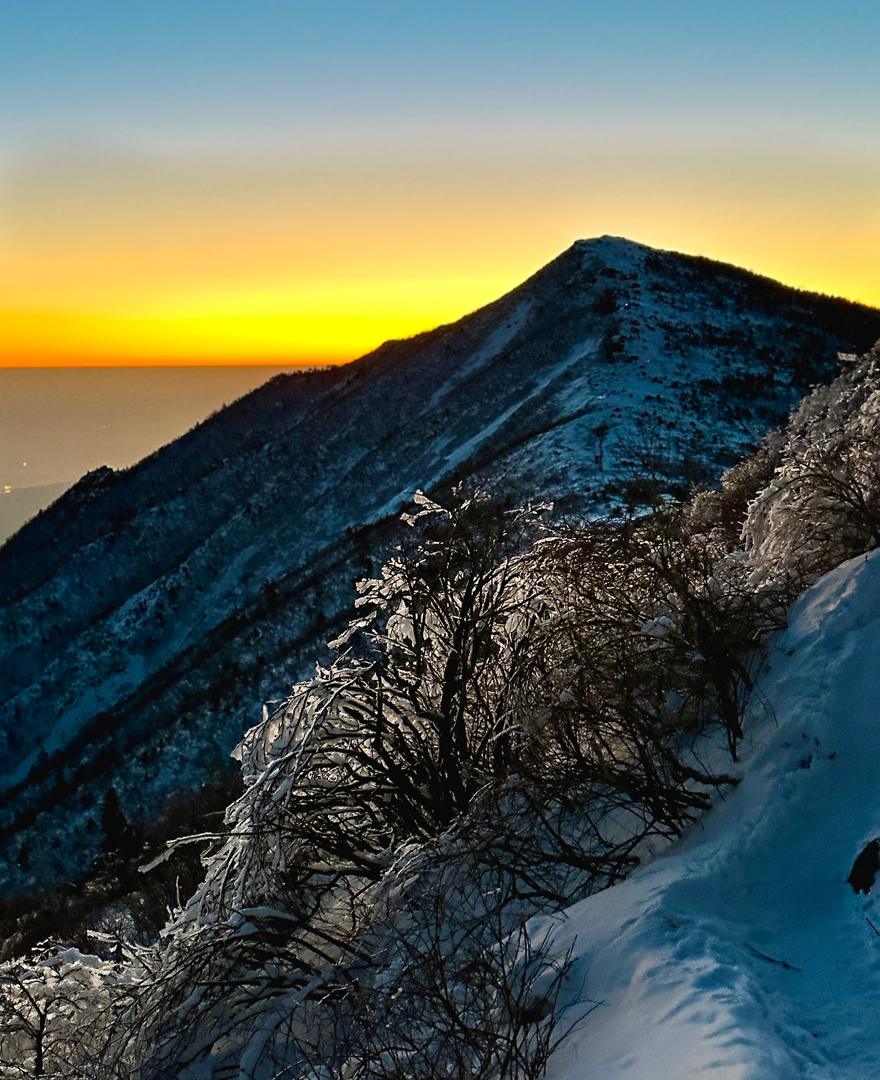 아저씨가 사랑의 눈빛을 거두고 놀란 눈으로 땅바닥의 나를 내려다보며 감탄사를 내뱉는다. 26kg짜리 배낭이 등에 달려 있으니 얼른 일어서지지도 않는다. 이따만한 배낭을 메고 완벽한 산악인 행색으로 겨울산을 향해 걸어가고 있었는데…. 날 보고 소리내어 웃지 않은 것만 해도 내 입장에선 고마워해야 할 일이다.