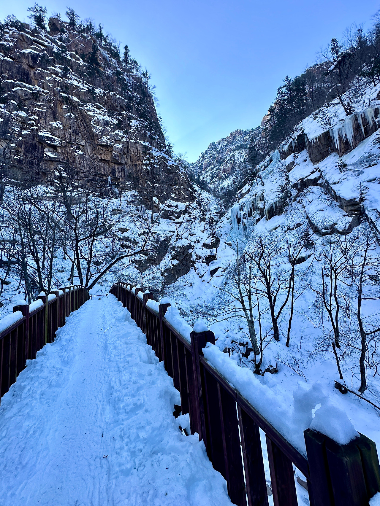 신흥사를 지나 비선대 가는 산책길로 접어드니 사람이 확연히 줄었다. 나무숲 사이 조용한 눈길의 분위기가 나쁘지 않다. 저쪽에서 요염한 포즈의 여자를 남자가 공들여 사진에 담는, 한눈에 보아도 너무너무 사이 좋은 중년 커플의 알콩달콩 사랑의 대화가 한적한 산책길을 타고 퍼져 온다. 빨리 지나가 주어야겠지, 지나치게 빠른 속도로 확확 걸어서 지나가다 커플 코앞 1.5 미터 지점에서 아이젠에 신발끈이 걸려 와장창 땅바닥에 나뒹굴었다.
