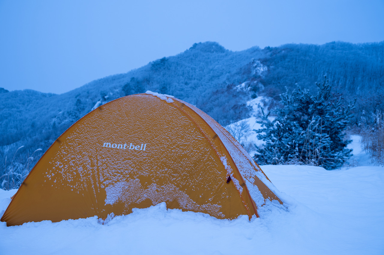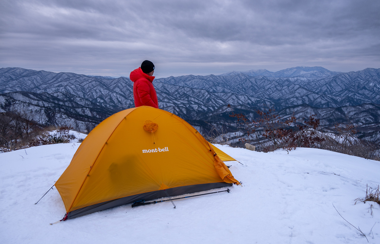바람도 없는 고요한 밤, 올 겨울 마지막일 수도 있는 눈이 싸라락 싸라락 텐트 벽을 매만지며 떨어진다. 지붕에 쌓이는 눈은 이따금 쉬익 소리와 함께 텐트를 타고 흘러내린다.