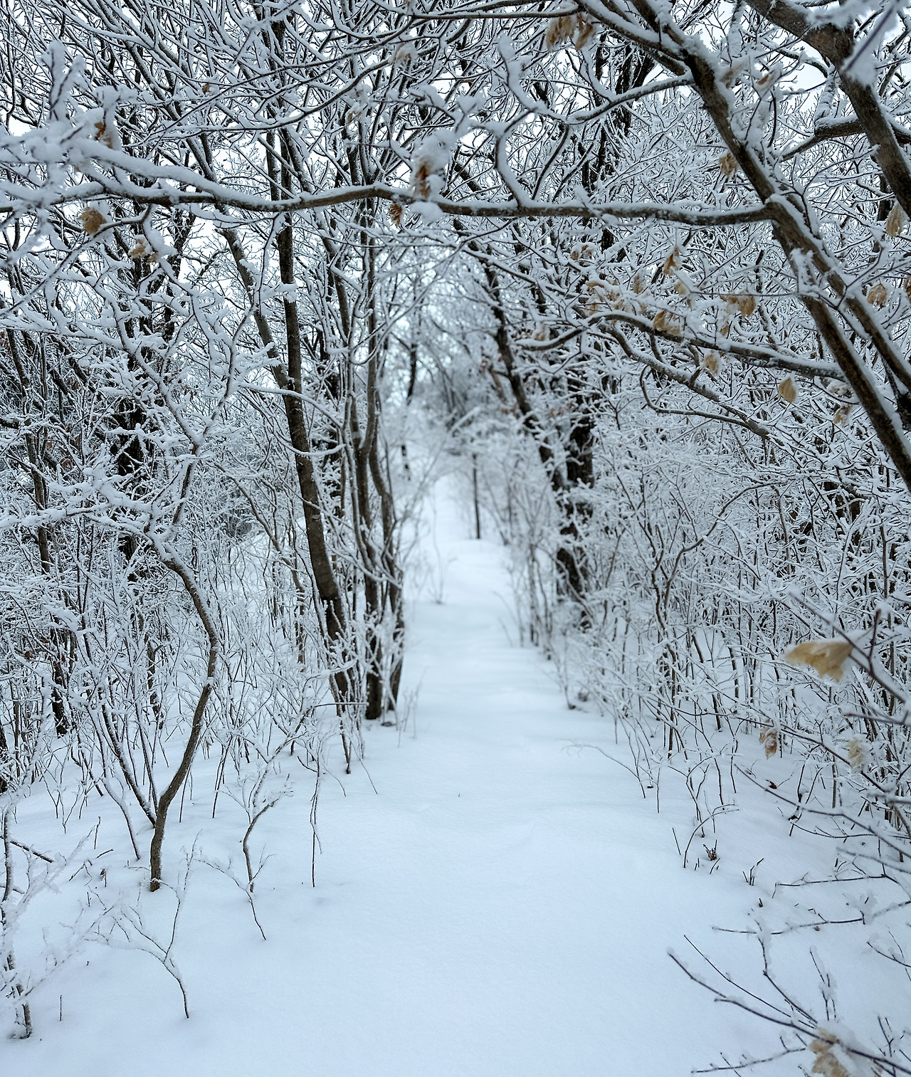 당연하지만 아직 산에는 아무도 없다. 등산객이 있을 법하지도 않고, 있다 해도 여기까지 오려면 아직 멀었다. 폭신한 하얀 카펫 길, 양쪽으로 도열한 나무들이 팔 벌려 환영해 준다.