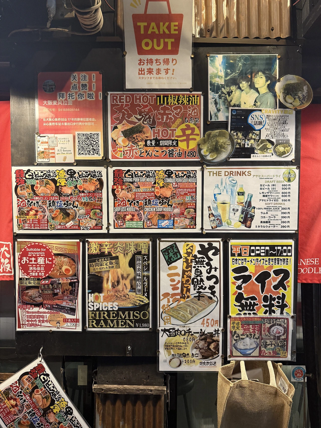 라멘집에 붙은 메뉴판이 화려하면서도 조잡했다. 검은색 국물의 돈코츠 라멘을 파는 가게였다. 맛보지는 않았지만, 적어도 나의 눈길은 사로잡은 가게다.