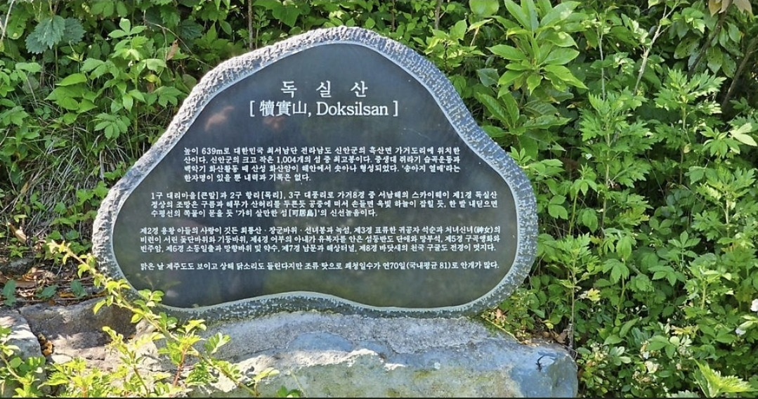 섬의 중심에는 신안군 최고봉인 *독실산(639m)*이 우뚝 솟아 있다. 이는 한라산과 성인봉에 이어 국내 섬 중 세 번째로 높은 산이다. 이곳에선 맑은 날이면 제주도와 중국 산둥반도까지 보인다고 전해진다.