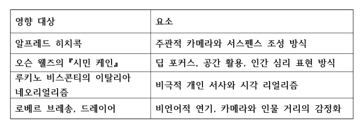 비언어적 심리 표현이라는 관점에서 현대 미니멀리즘 영화에도 지대한 영향.