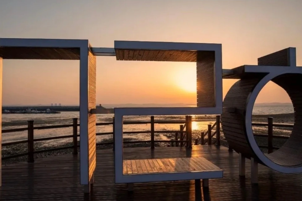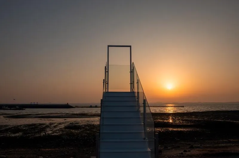 해가 질 무렵, 바다와 벽이 같은 색이 된다.