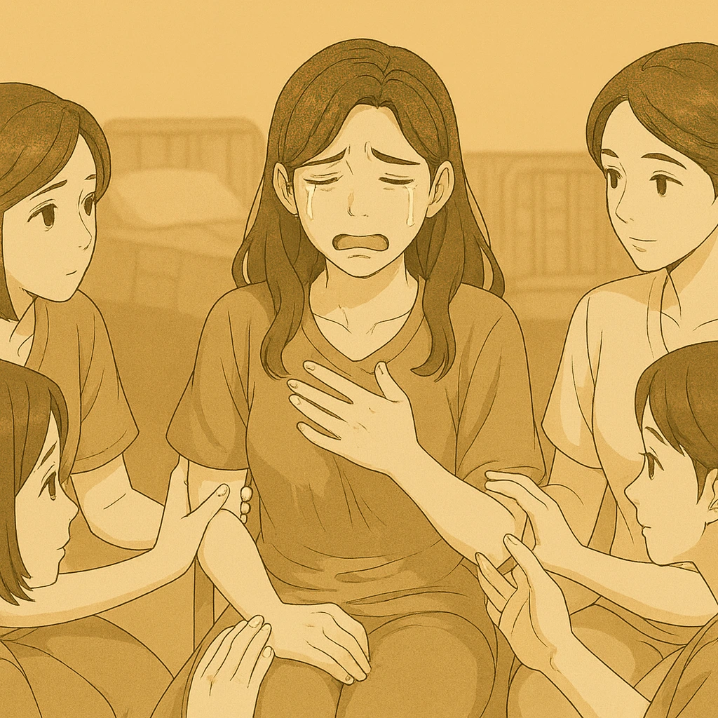 곁에 있던 남편이 다가와 조심스럽게 미정의 어깨에 손을 얹었다.