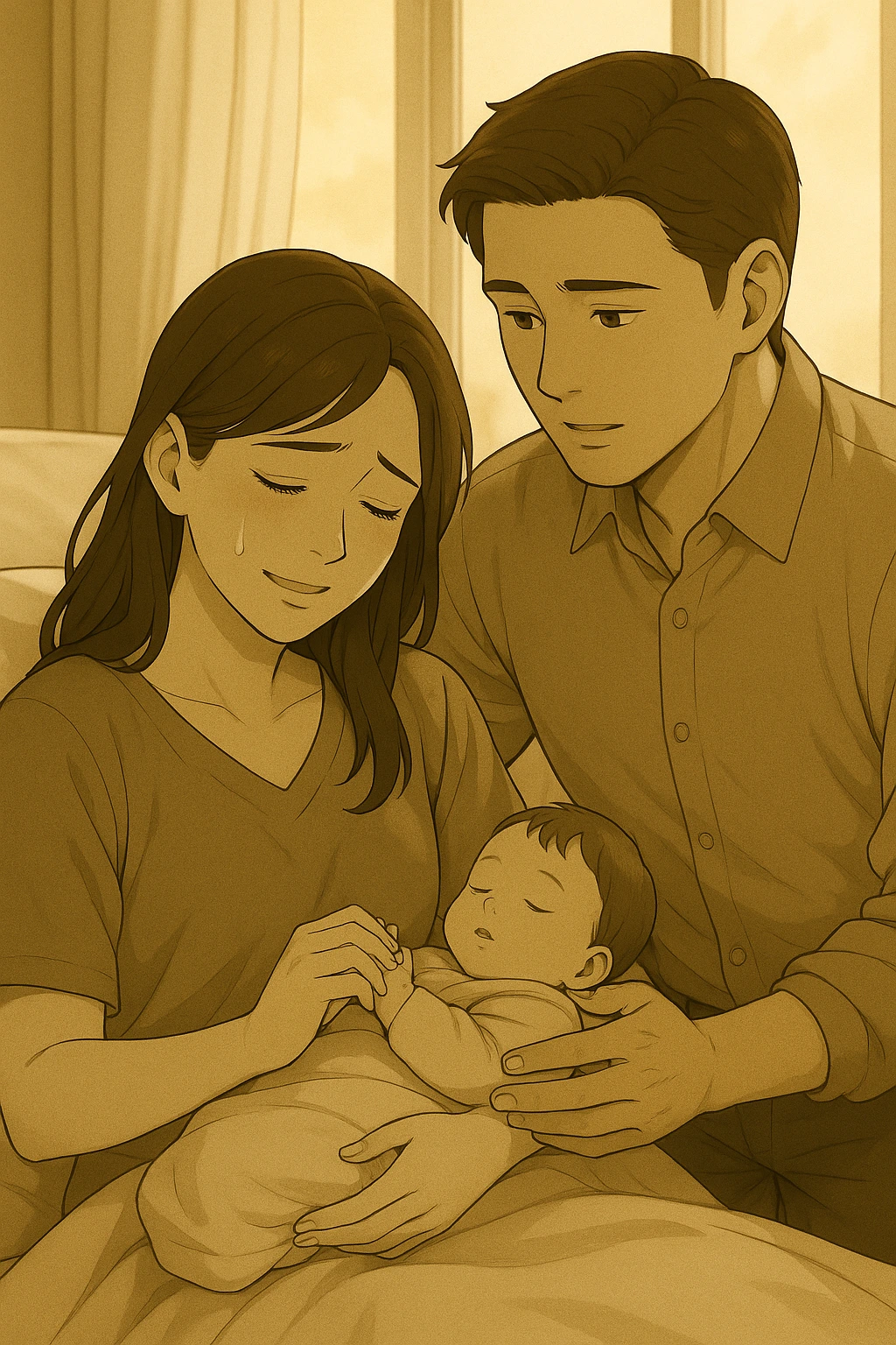 아기가 조용히 잠든 순간, 미정은 아기의 얼굴을 오래 바라보다가,