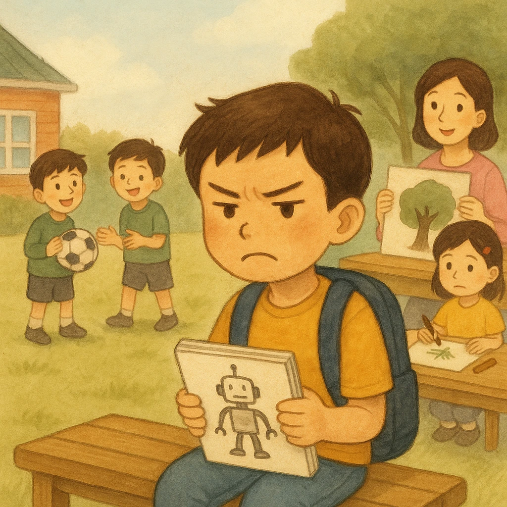 민호는 운동장 한쪽에서 혼자 놀았습니다.