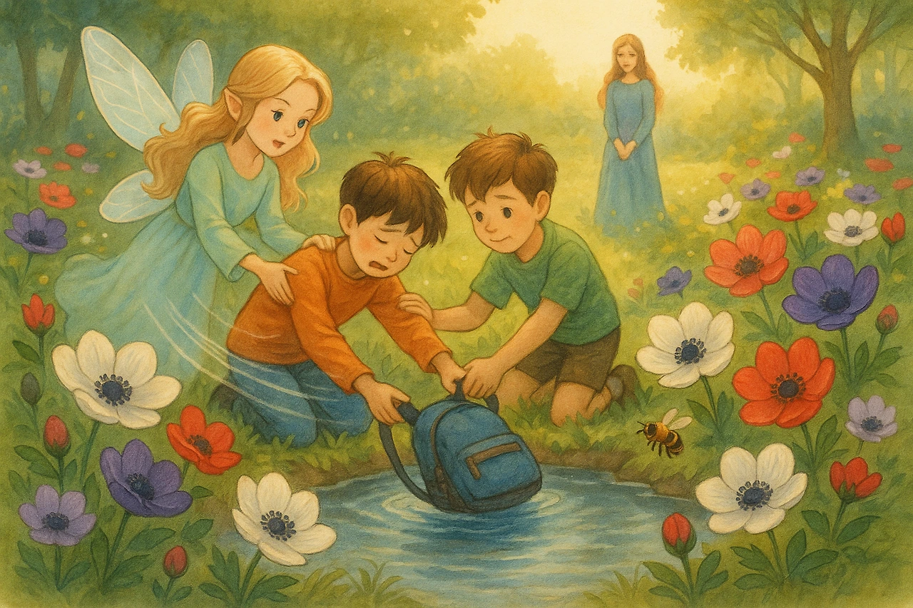 그때 연못가의 아네모네 꽃들이 함께 흔들리며 속삭였습니다.