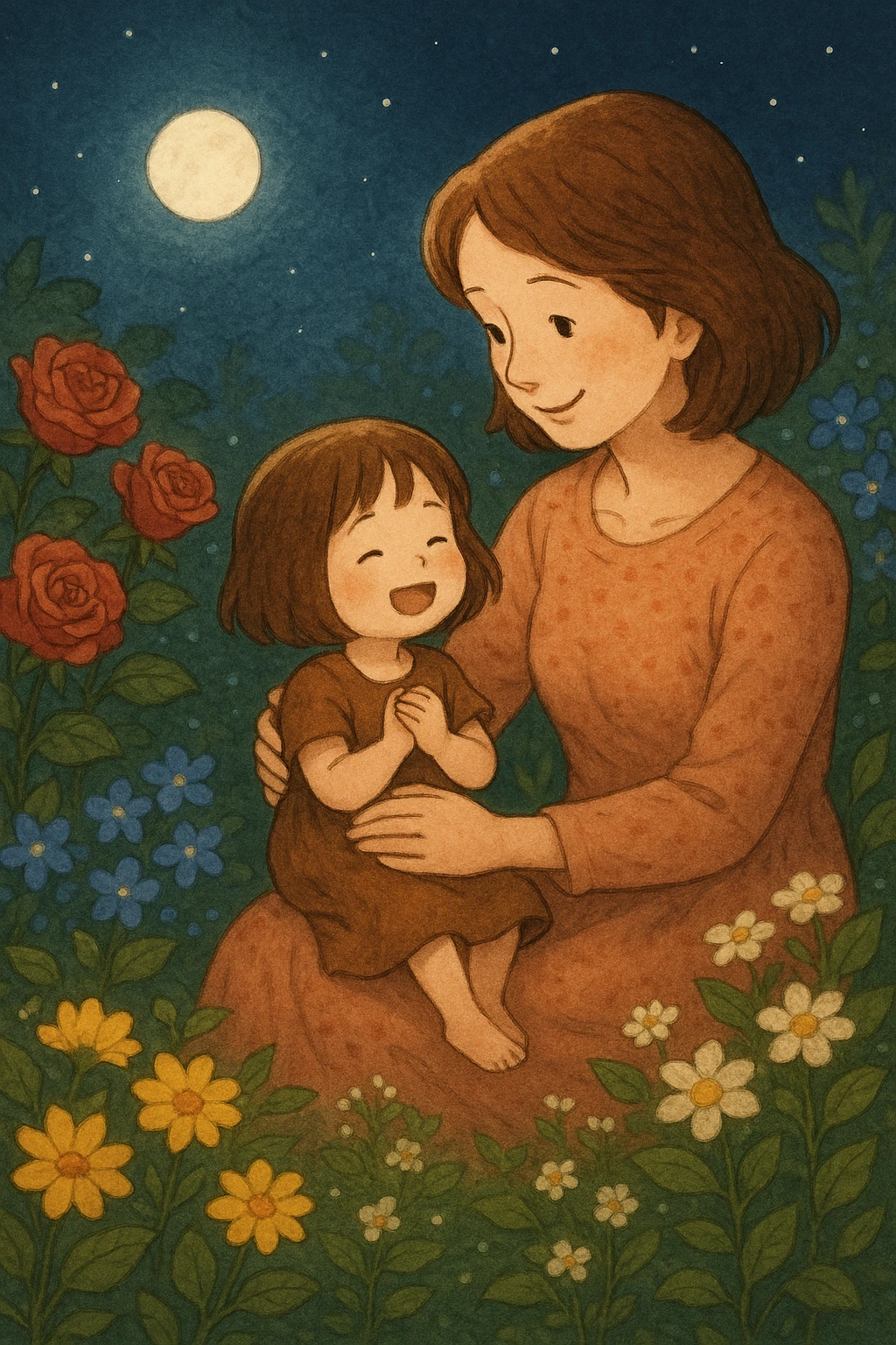꽃들은 서로의 향기를 나누며 달빛 잔치를 열었지.