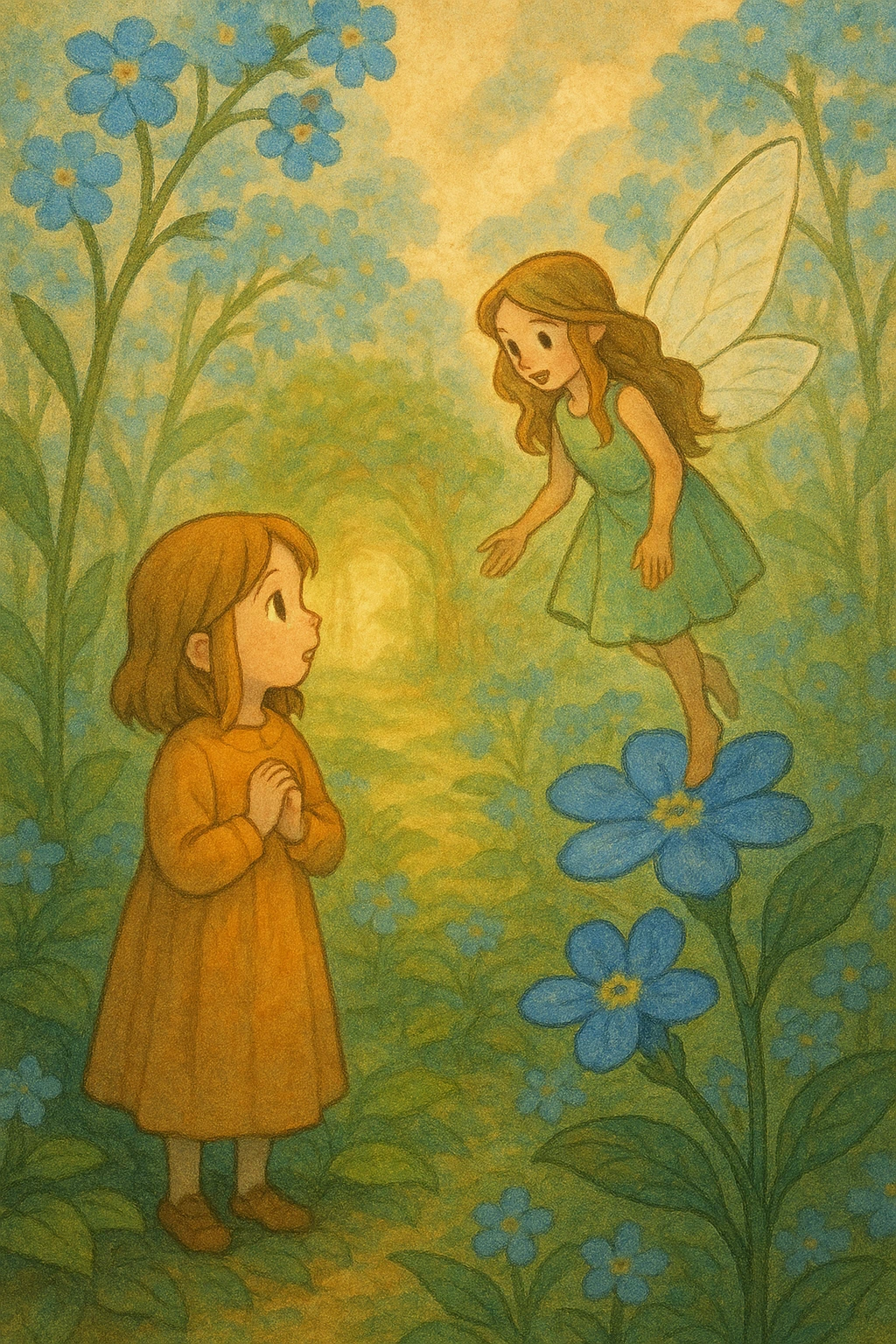 그 순간, 물망초 옆에서 작은 빛의 문이 열렸어.