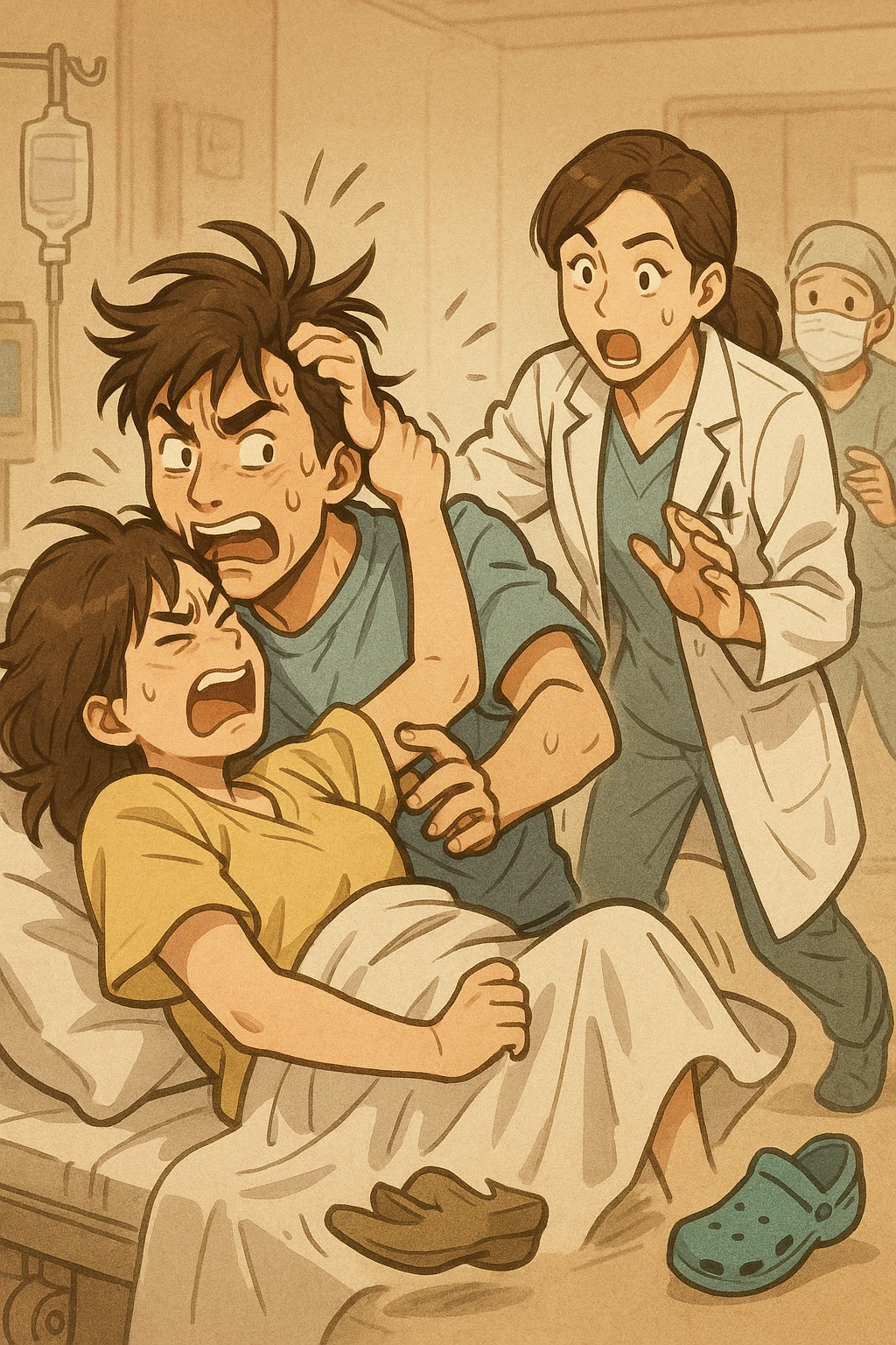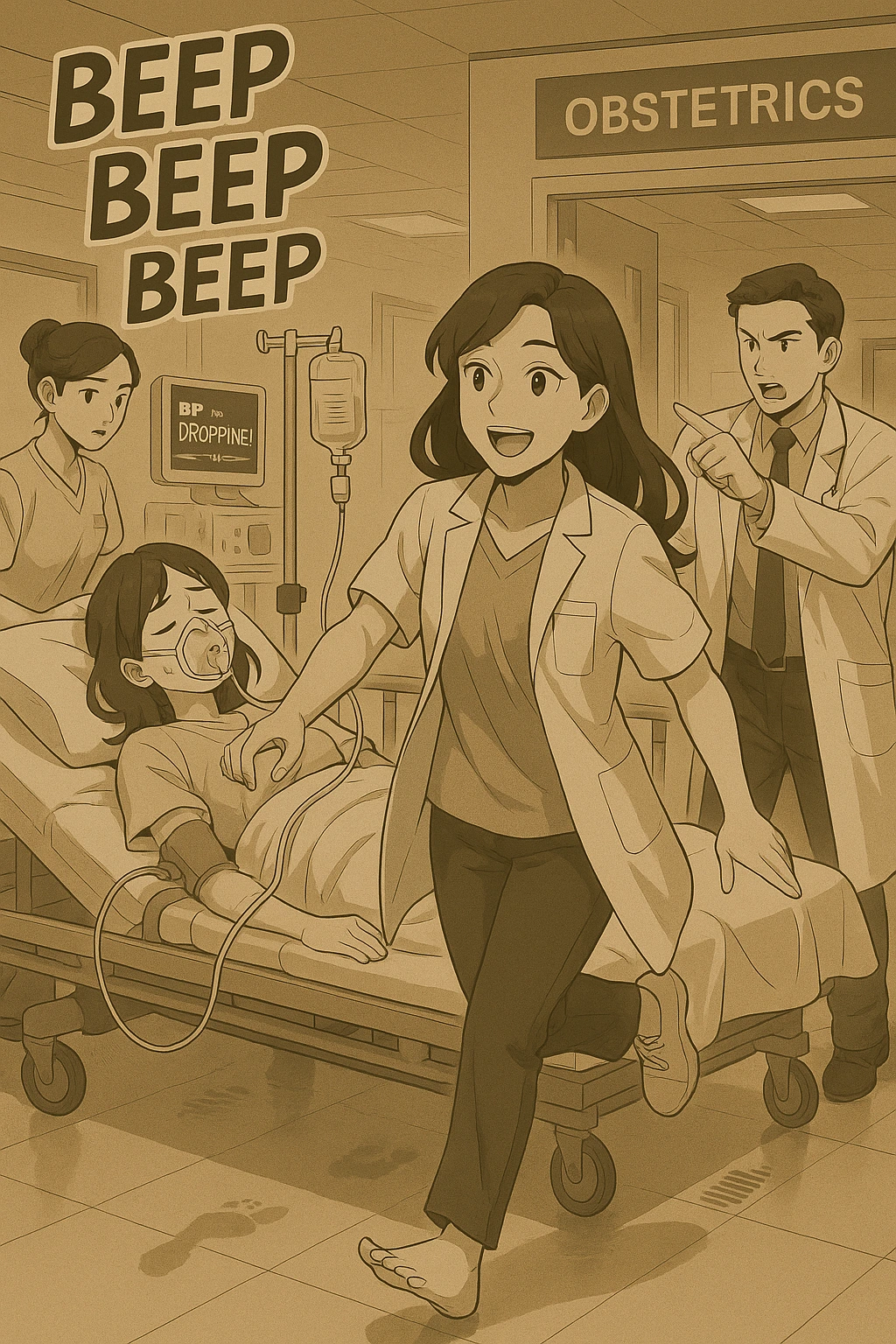 분만실, 절규와 긴박한 지시가 오가는 순간.