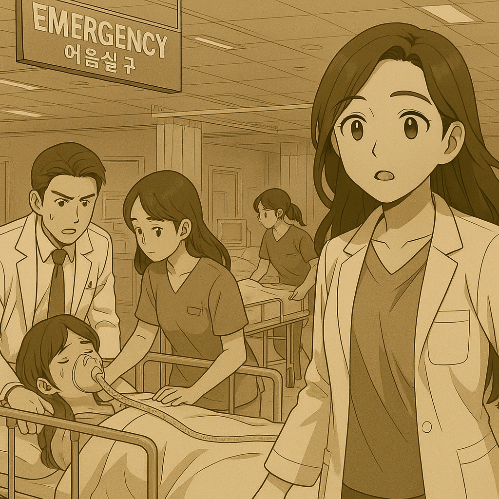 홀로 남은 크록스 한 짝이 병실 불빛에 반짝였다.