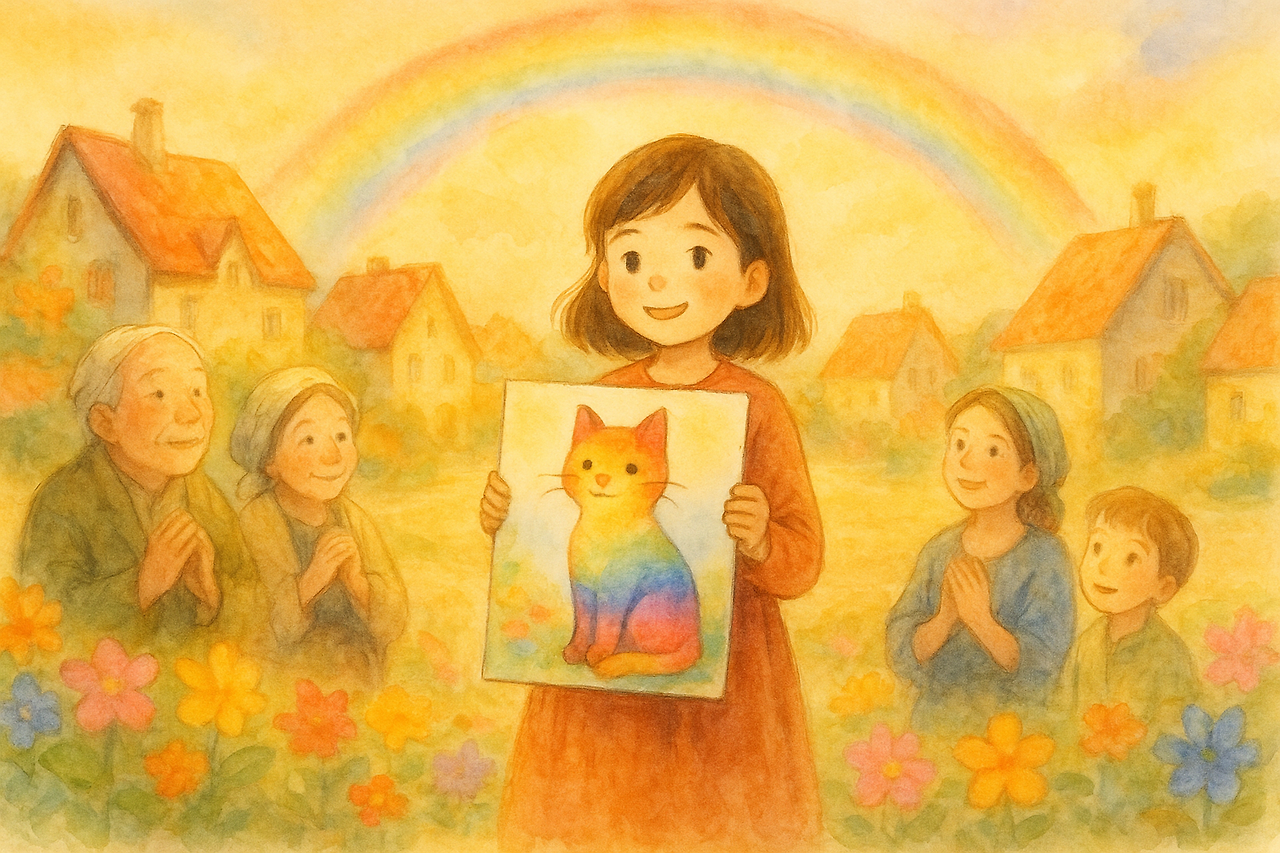 슬기가 그린 ‘무지개 고양이’ 그림은