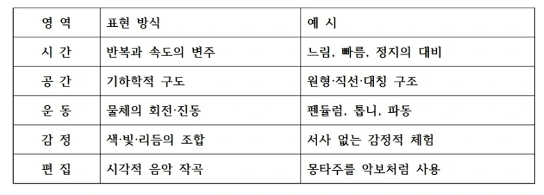 시각적 리듬 – 편집·반복·속도의 조합으로 시각적 음악 창조했다.