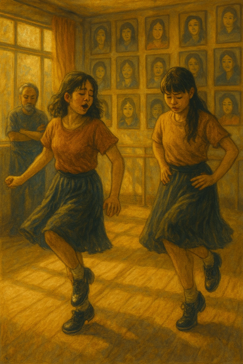 낡은 나무 바닥은 오랜 시간 동안의 연습으로 인해 닳고 닳았지만, 그 위에는 수많은 이야기와 꿈이 켜켜이 쌓여 있었다.