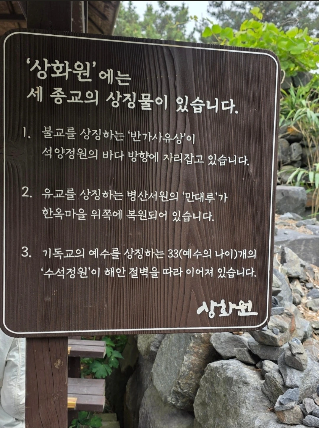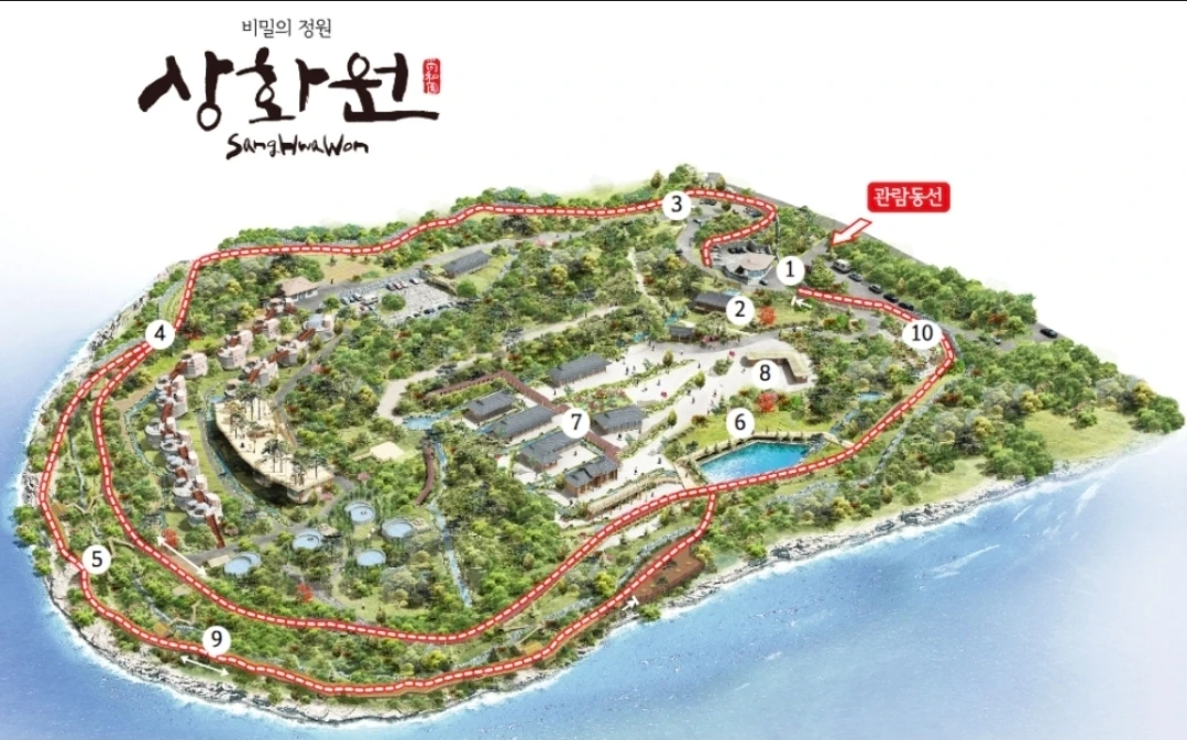 섬 전체가 하나의 정원이며, 바다와 산책로, 회랑, 한옥, 조각상이 한 폭의 그림처럼 이어진다.