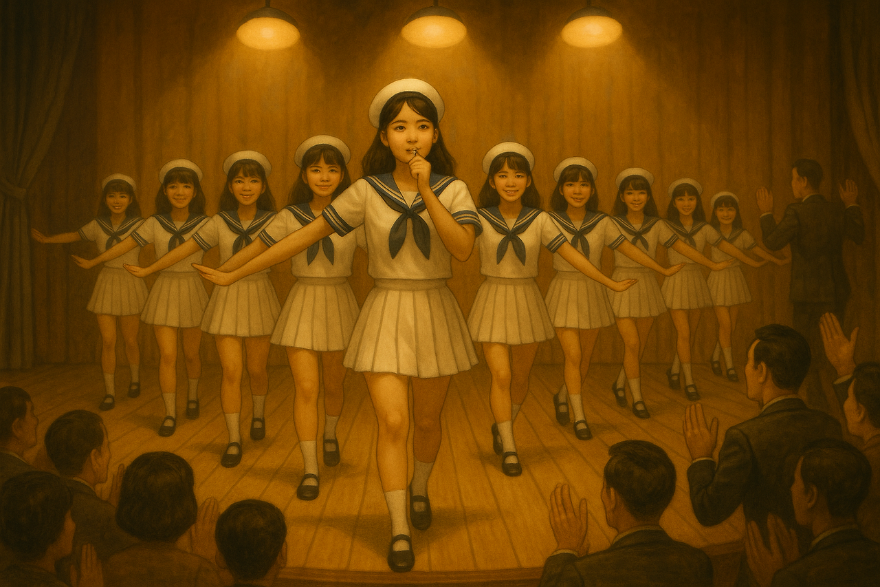 무대 중앙에서는 '월남에서 돌아온 새빨간 김 상사'라는 곡에 맞춰 세일러복을 입은 들레와 일곱 명의 예쁜 상대들이 칼군무를 선보이고 있었다.