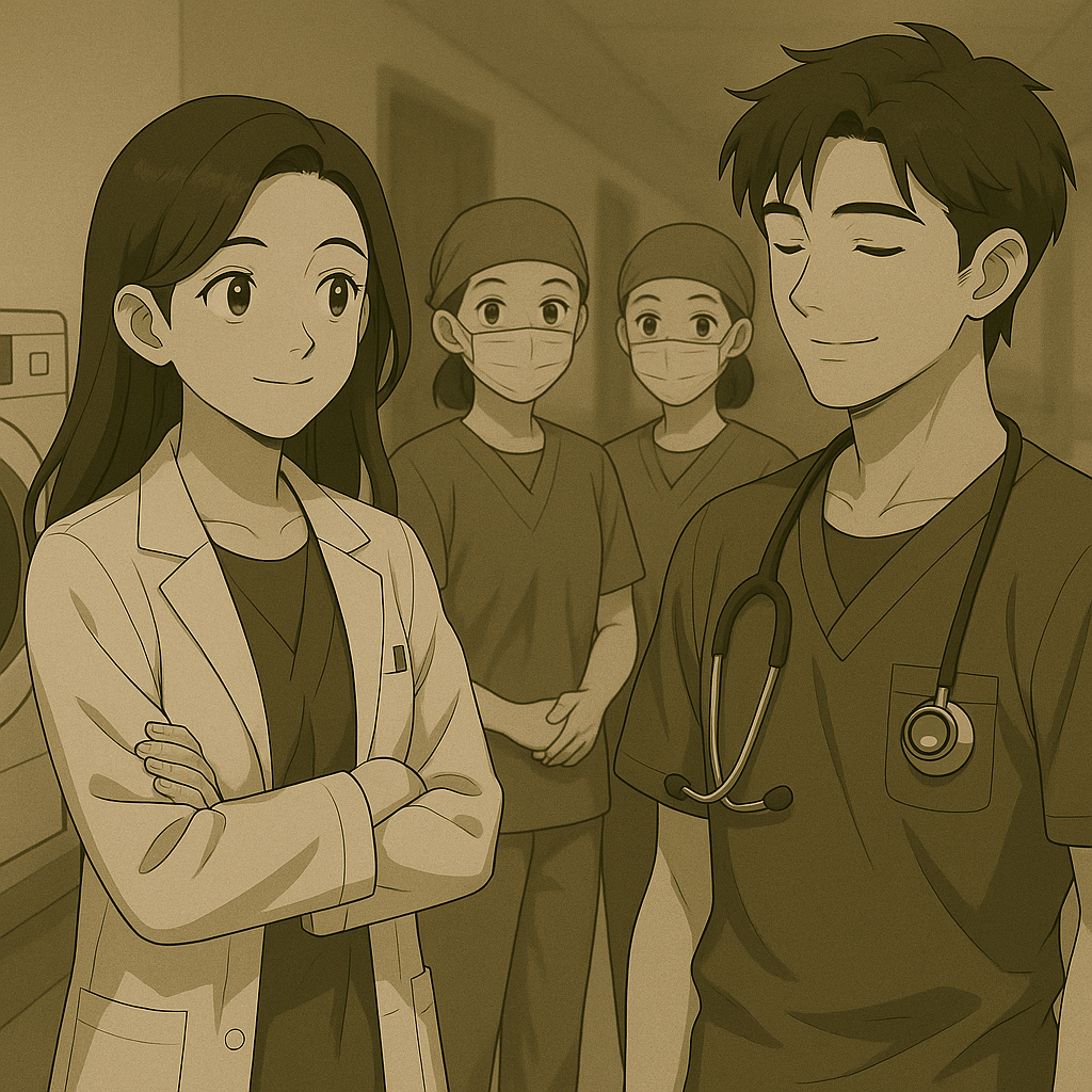 간호사실 뒷문 근처에서 작은 웃음소리가 새어 나왔다.