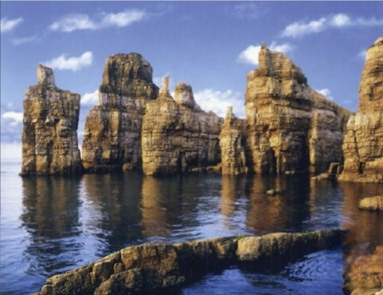 섬은 마치 바다 위에 떠 있는 한 송이 꽃처럼 고요하고 평화로웠습니다.