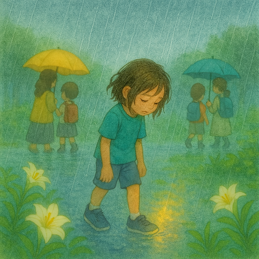 해나는 빗방울의 속삭임을 들었어.
