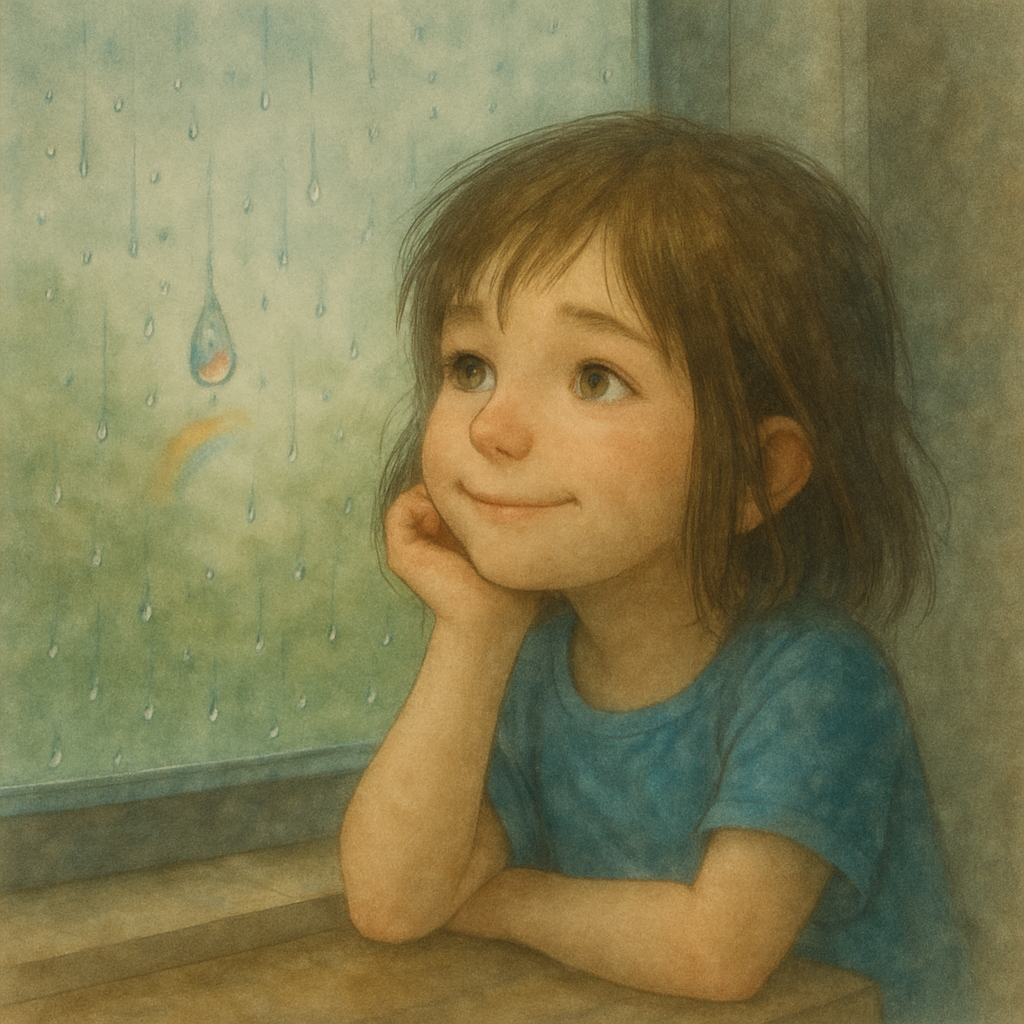 창문에 빗방울 하나가 내려앉았어.