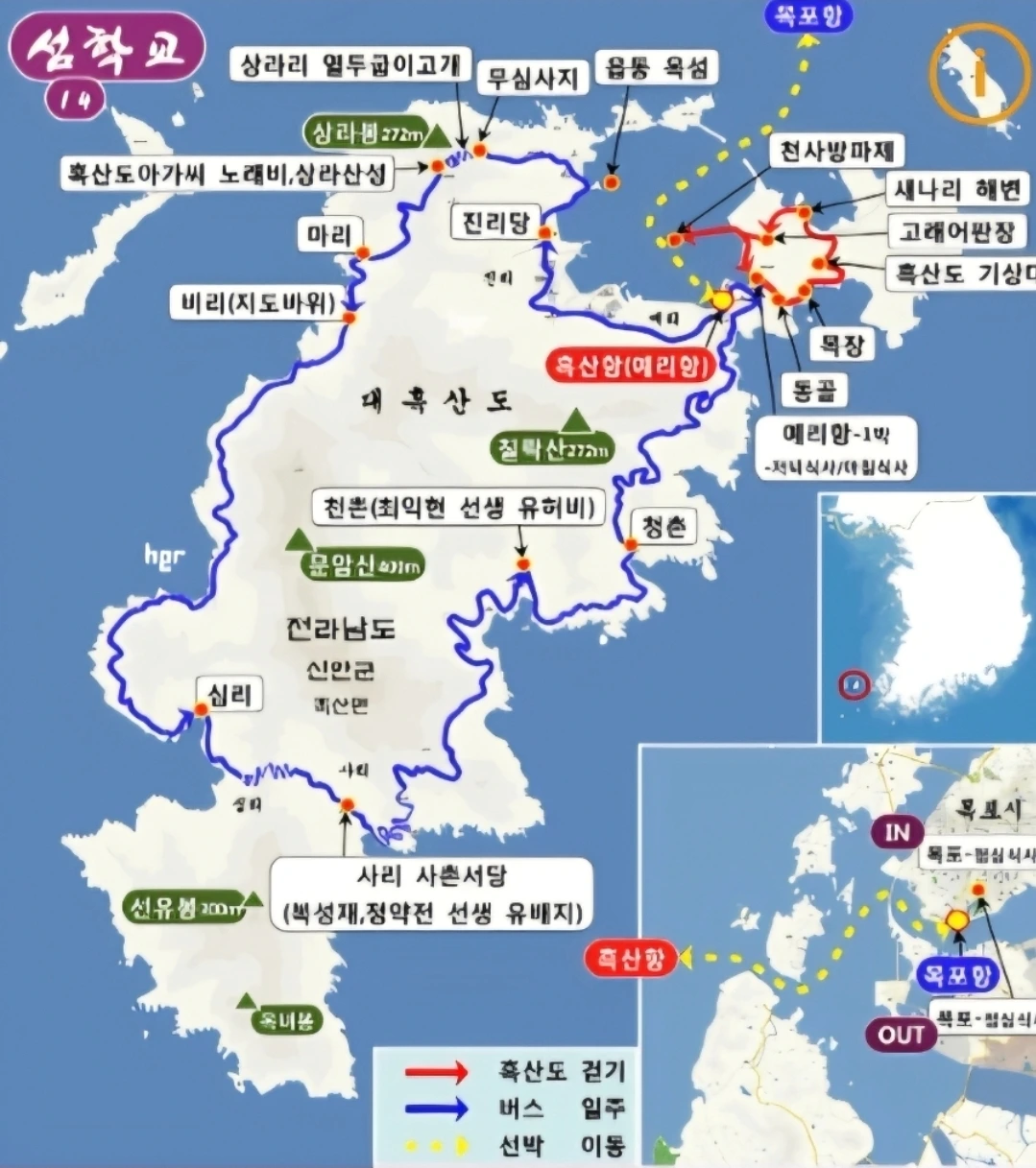 교통: 목포항 여객선 2~4시간 (기상 영향 큼)
