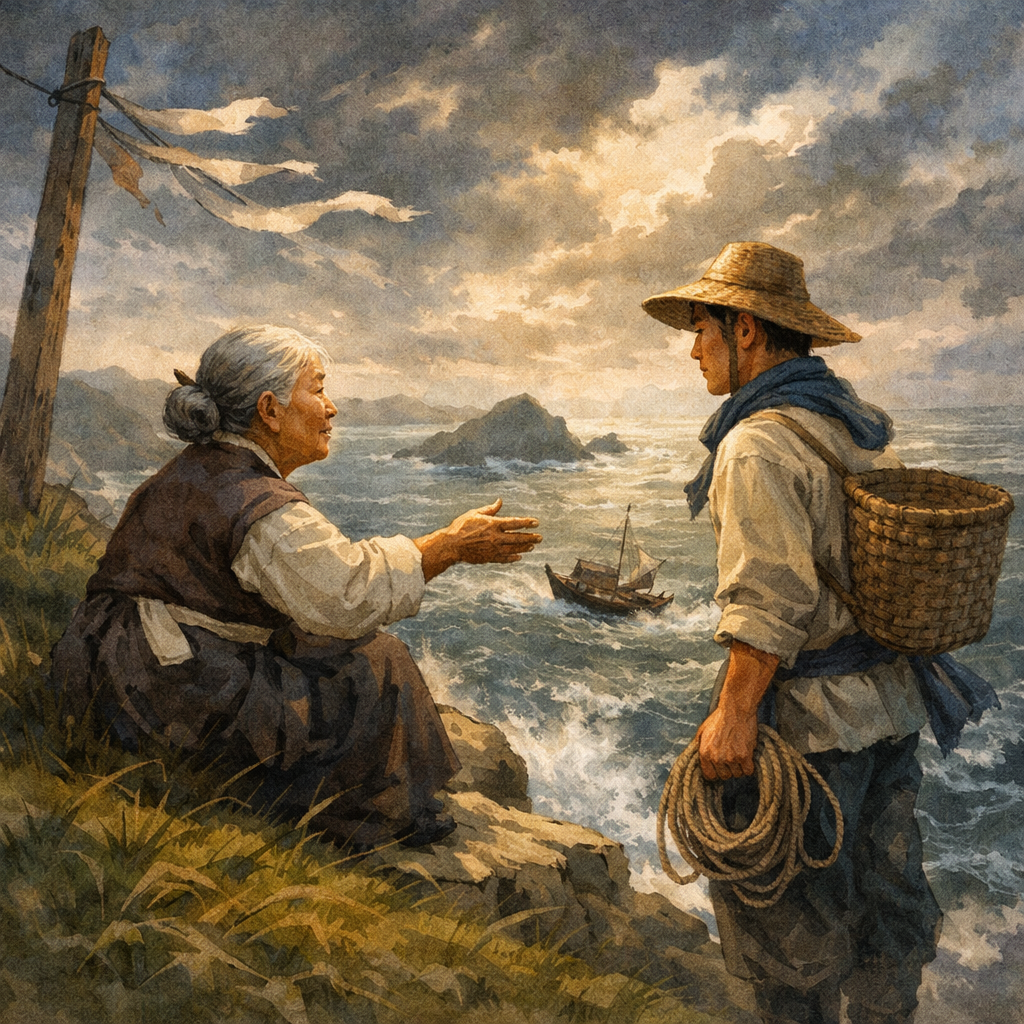젊은 어부 하나가 욕지할매의 말을 듣지 않고