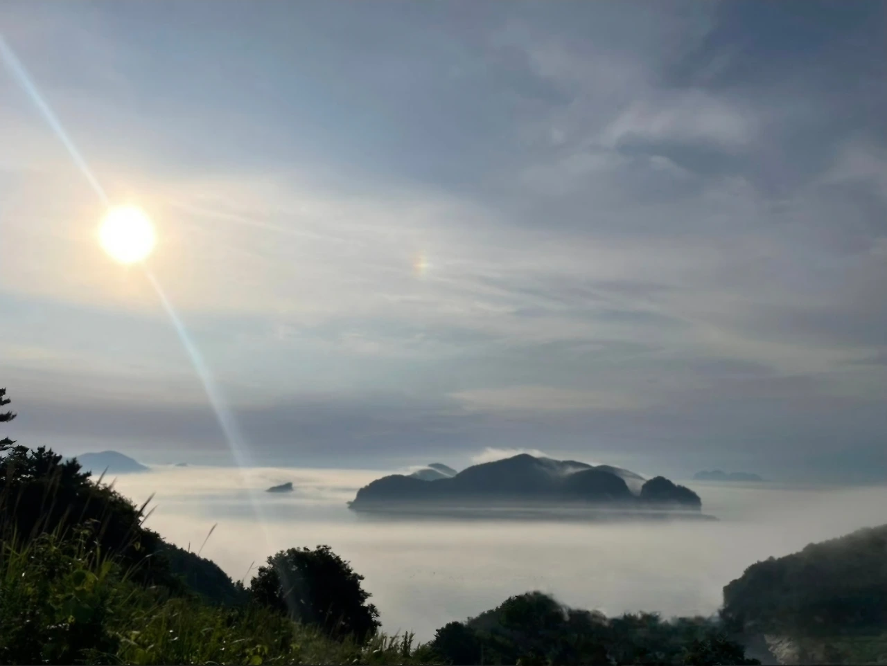 그 아래로 마을과 밭, 항구가 층층이 내려앉아 있다.