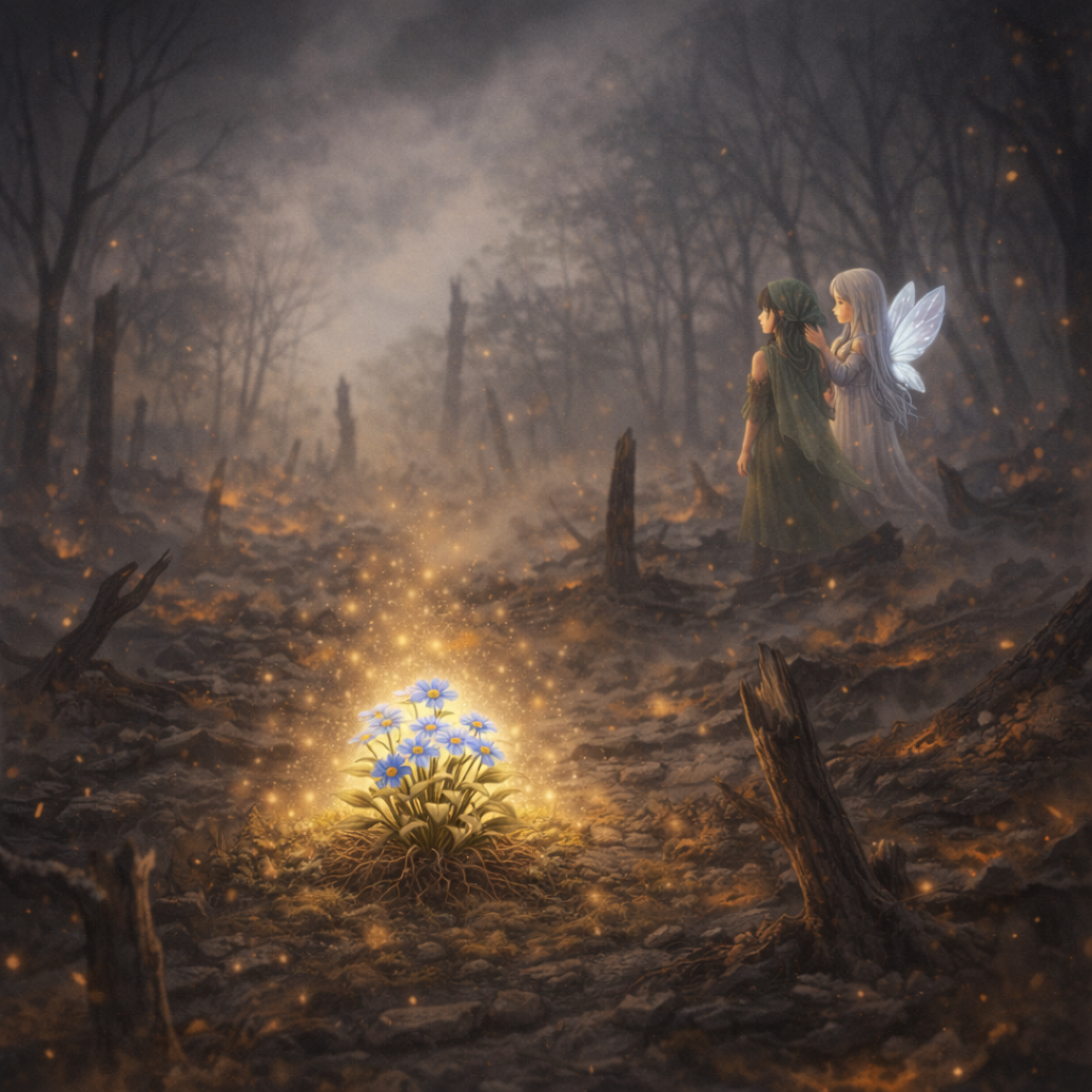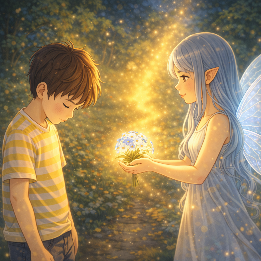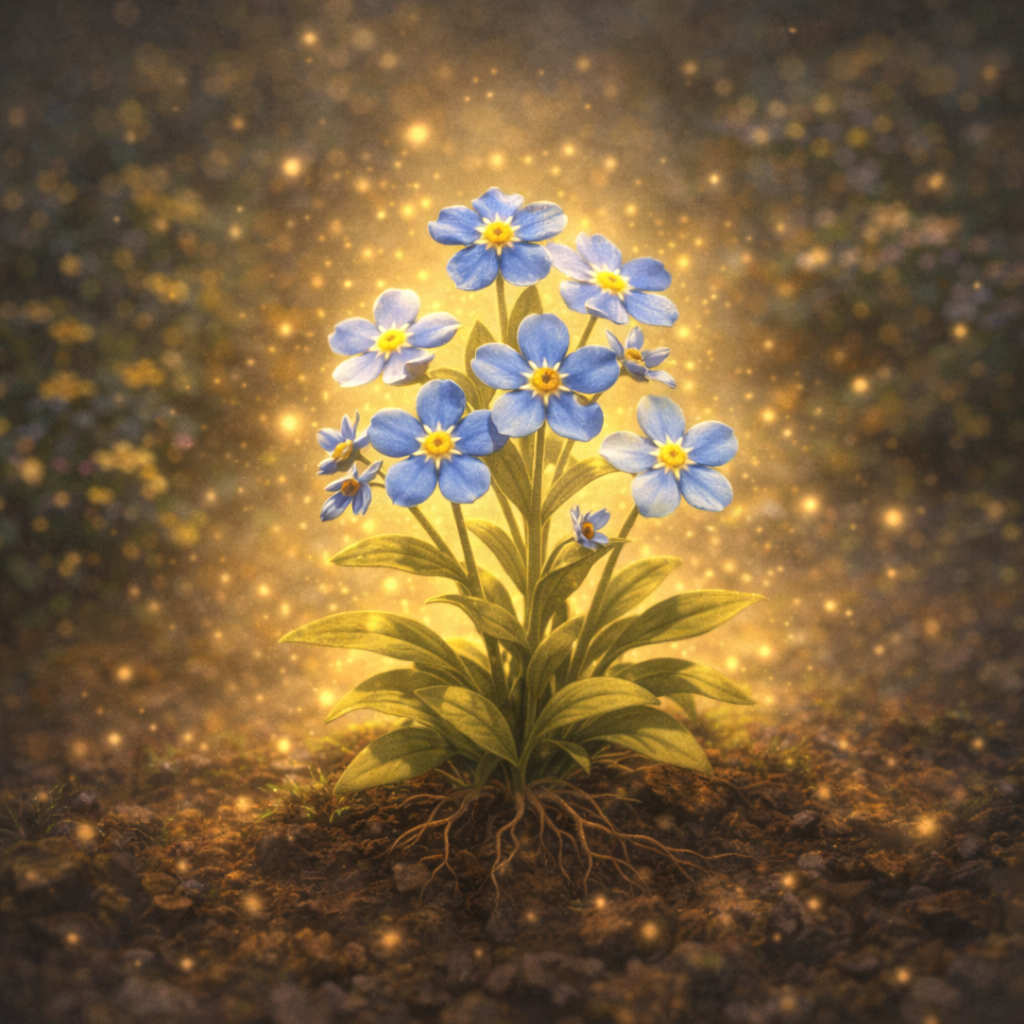 그 순간, 물망초가 부드럽게 빛났어.
