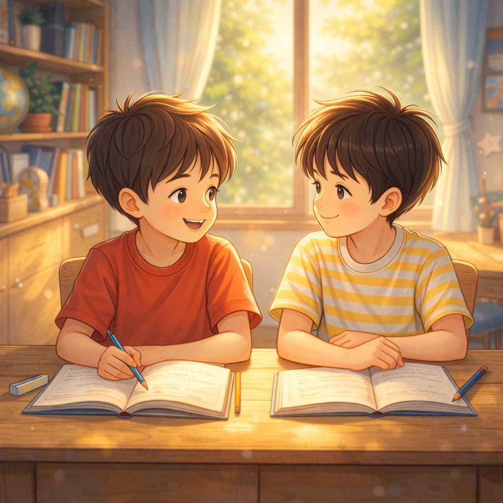 숙제도 나란히 앉아하고 싶었어.