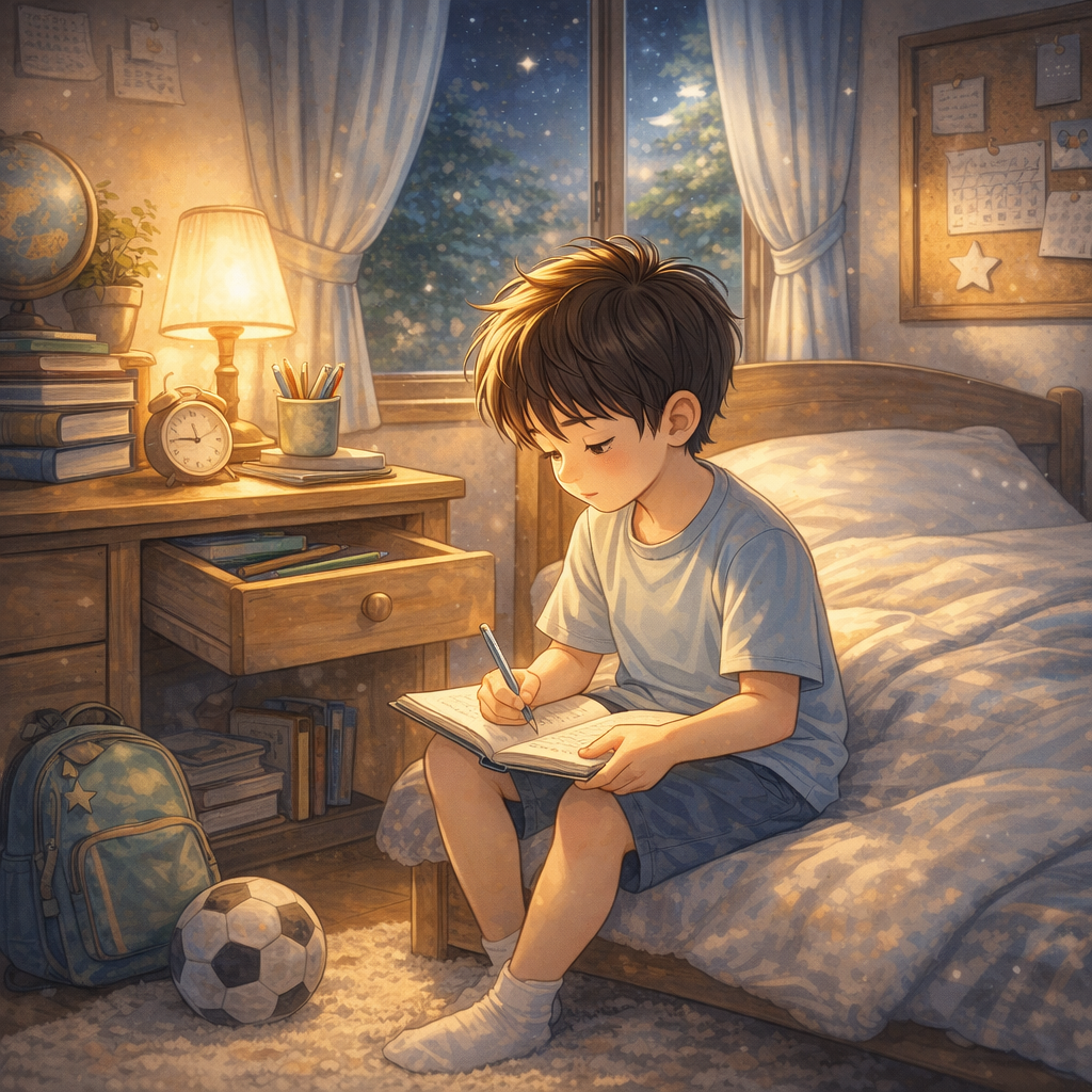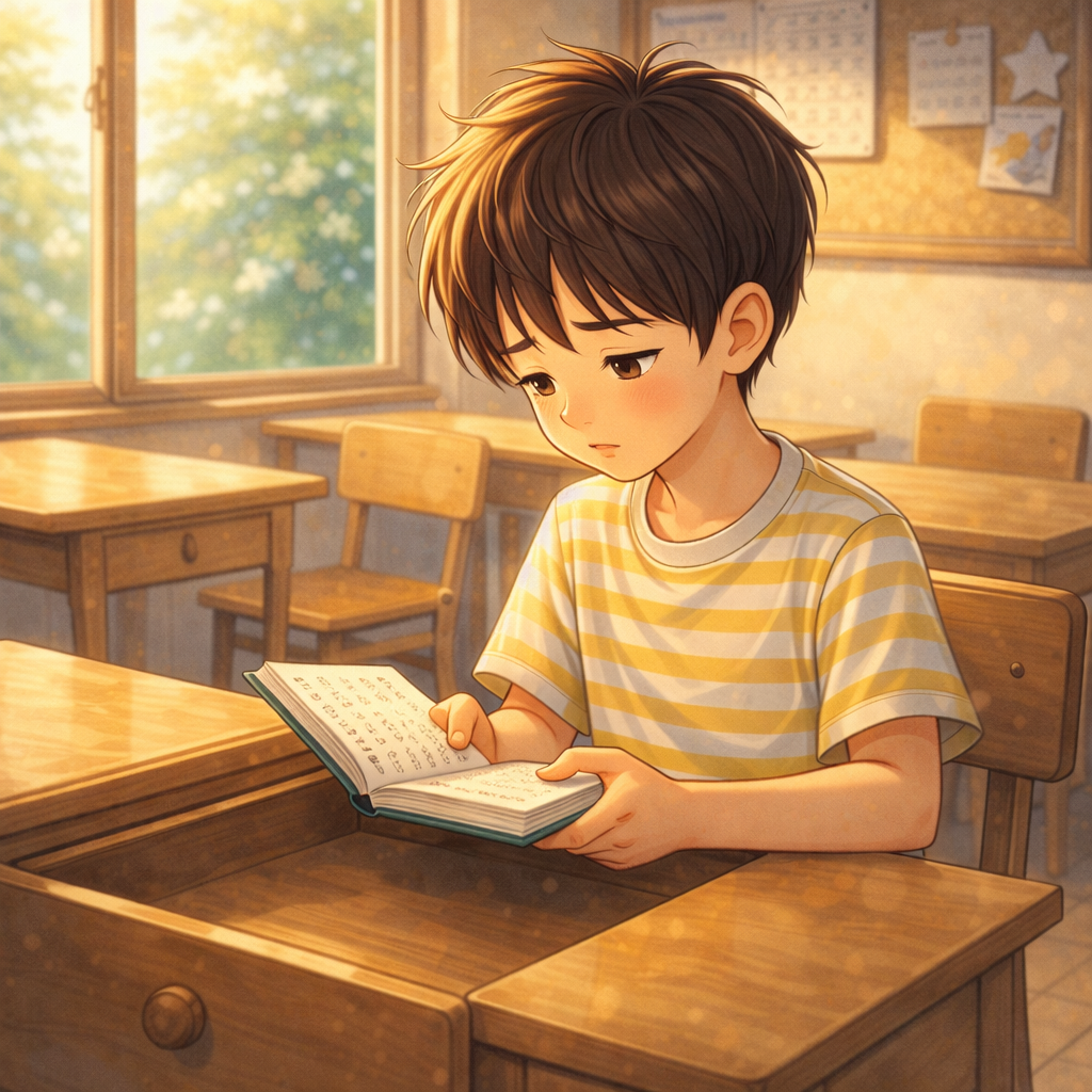 하루는 공책을 꺼내 천천히 읽었어.