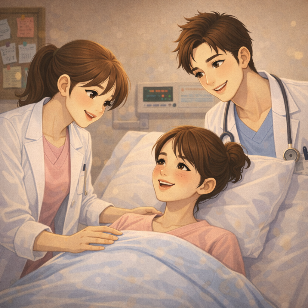 산모의 눈이 잠깐 반짝인다.