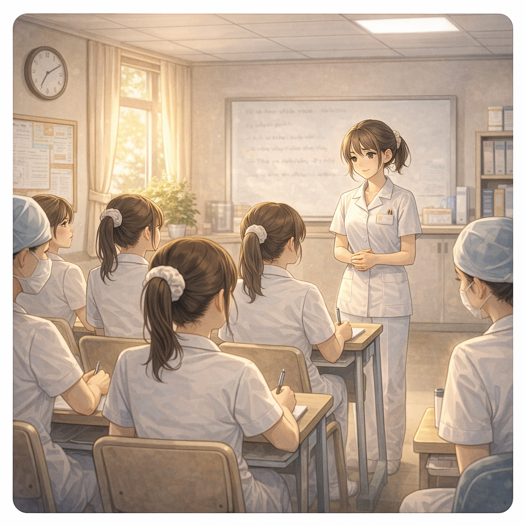 신입 간호사들이 줄 맞춰 앉아 있다.