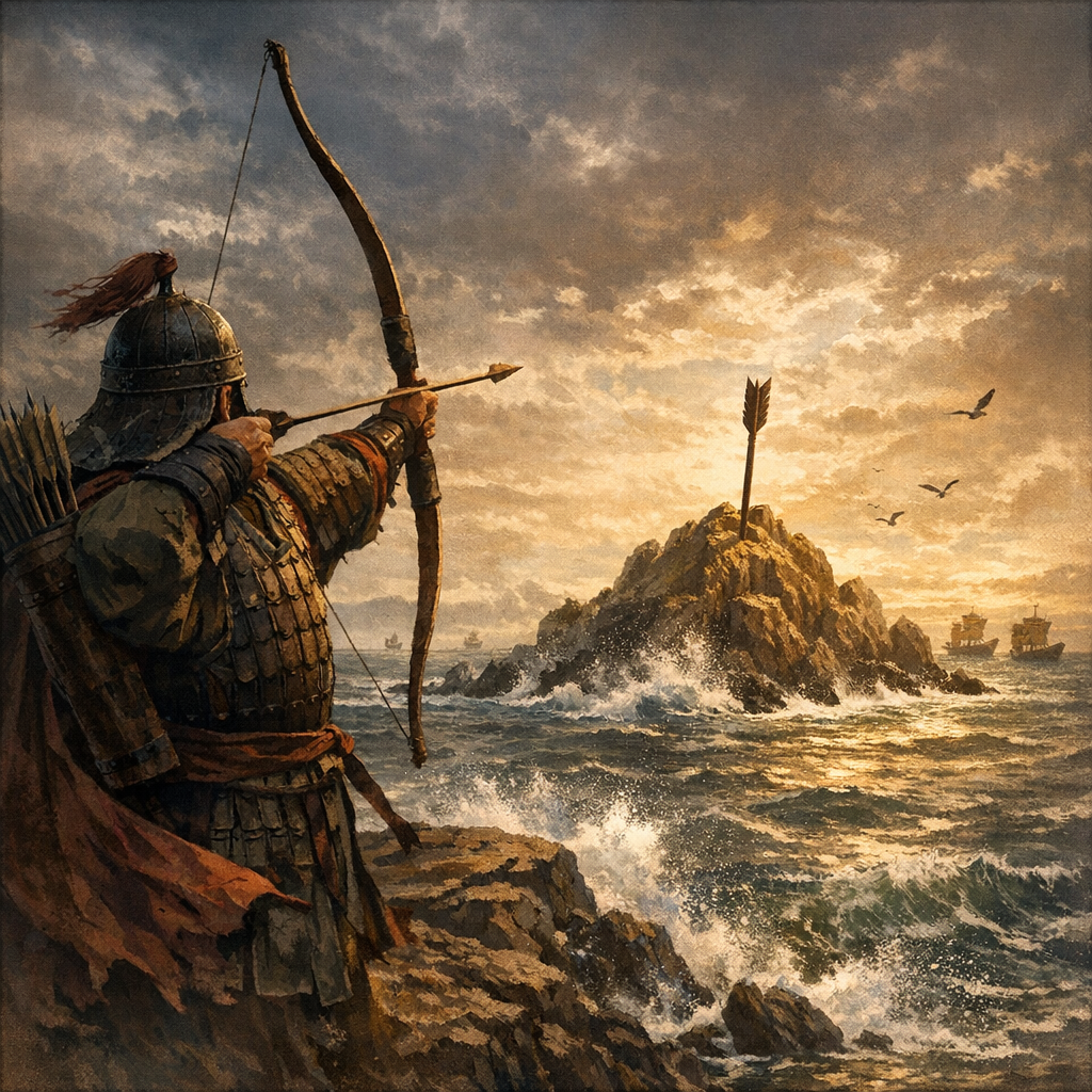 화살은 바다 한가운데로 날아가