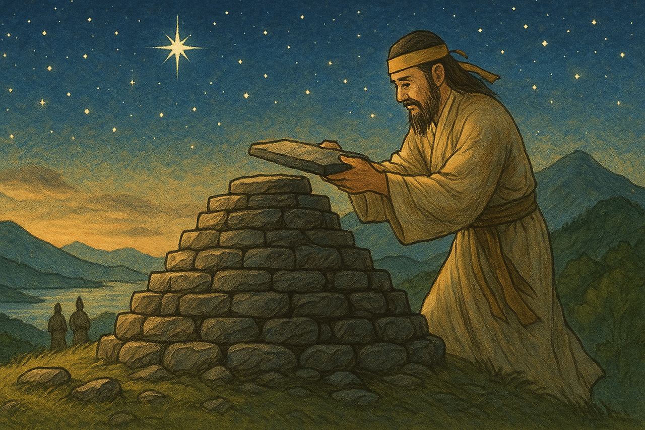 단군은 그 자리에서 하늘에 제를 올리기로 마음먹습니다.
