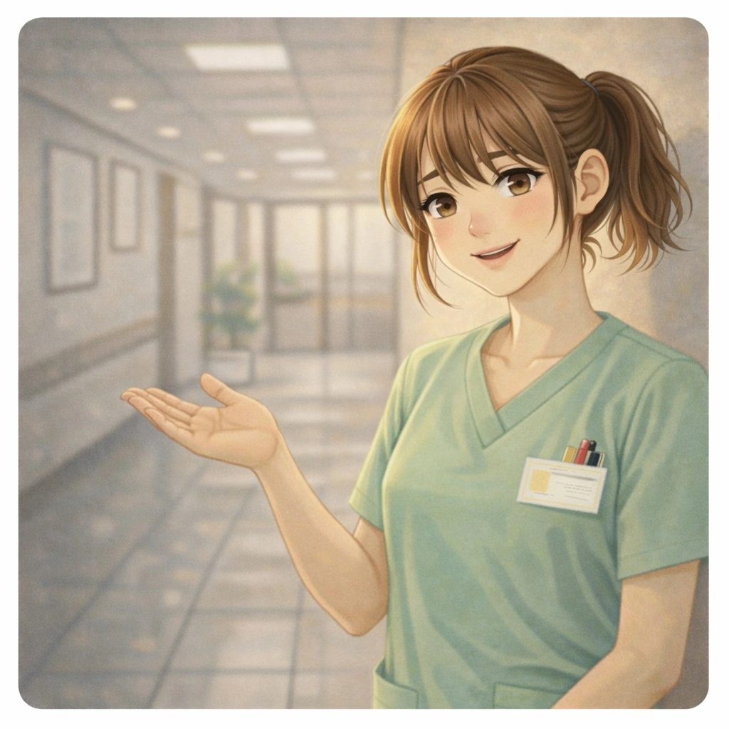 그녀가 산모의 눈높이에 몸을 낮췄다.