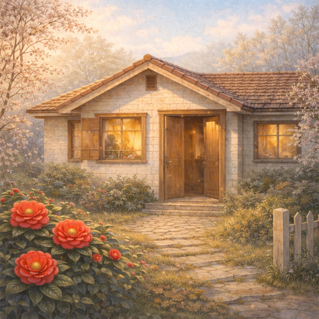 창가의 동백꽃이