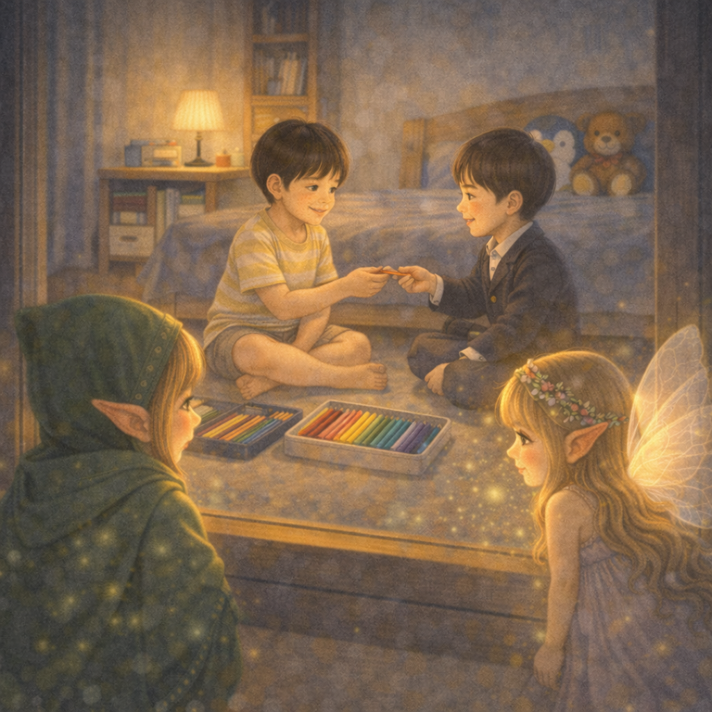 그때 창가에 작은 빛이 내려왔어.