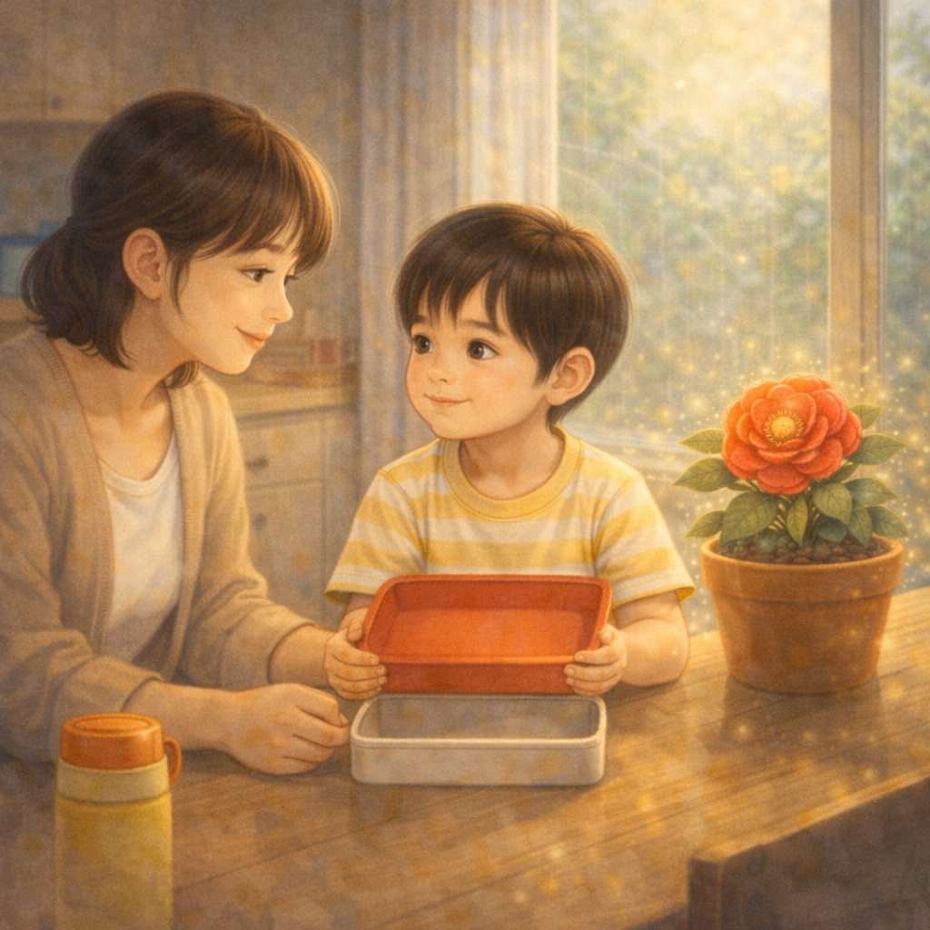 식탁 위에 놓인 도시락을 천천히 들었어.