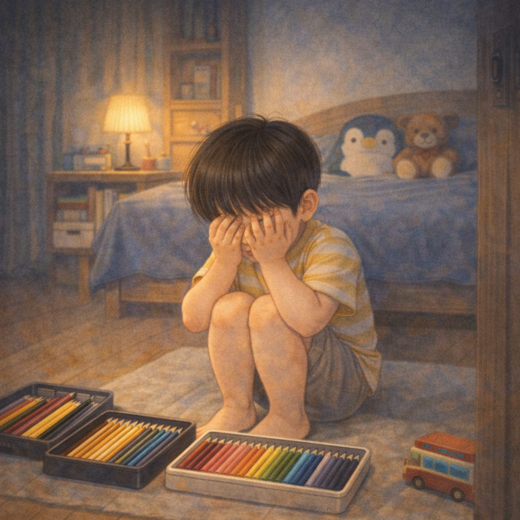 지율이는 울다가 자기 방에 앉아