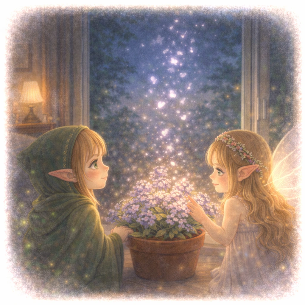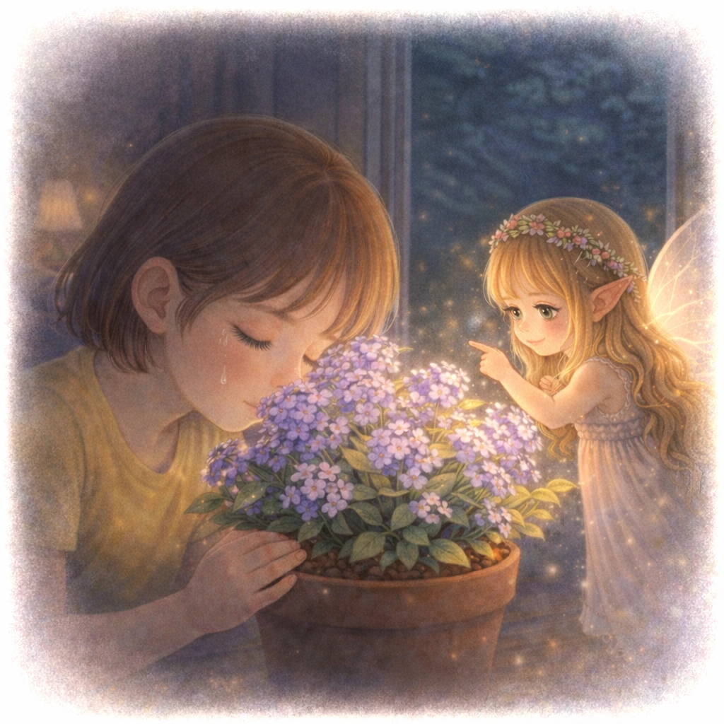 창가의 라일락 꽃이 은은하게 빛나고 있었어.
