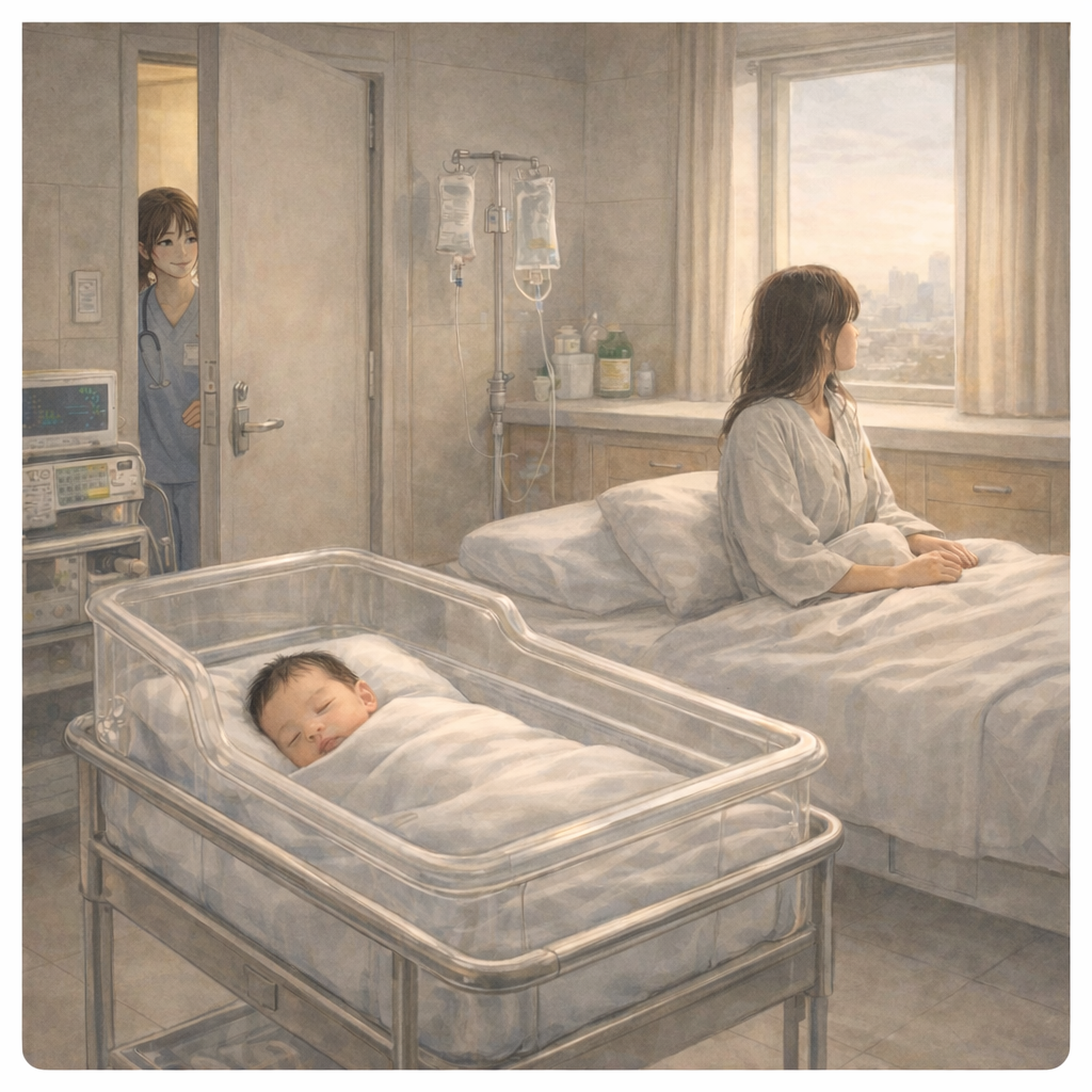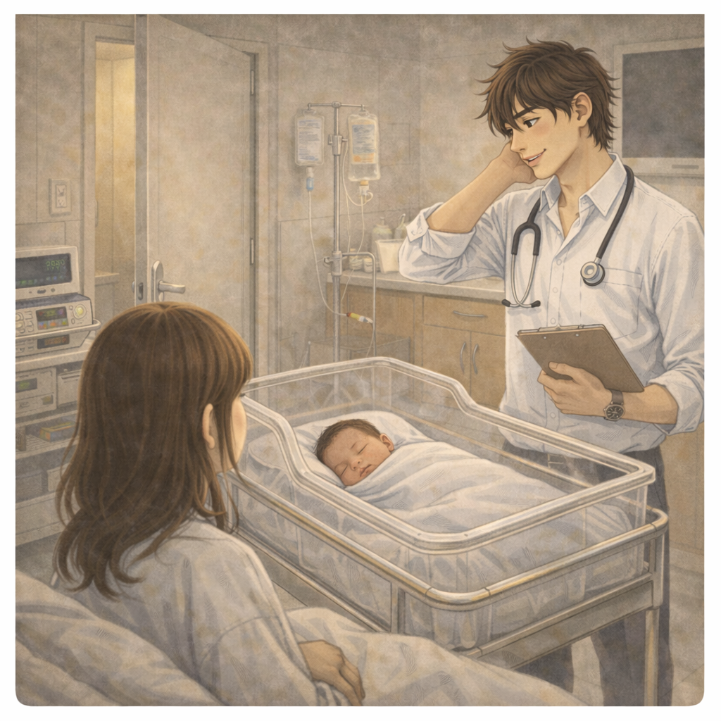 산모의 시선이 잠깐 흔들렸다.
