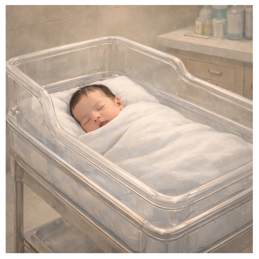 요람 안에서 아기가 손을 한번 움직였다.