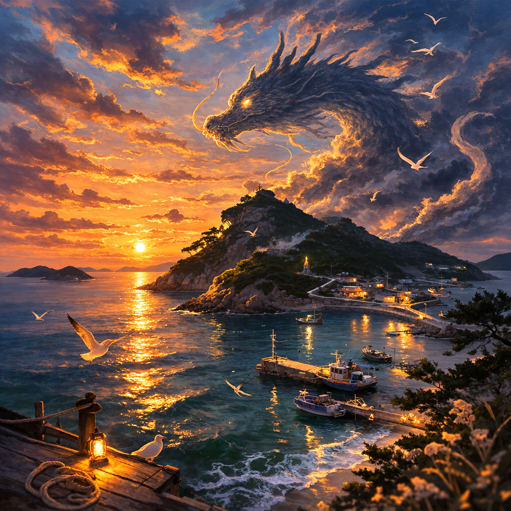 용은 조용한 바다 아래에서 잠이 들었다.