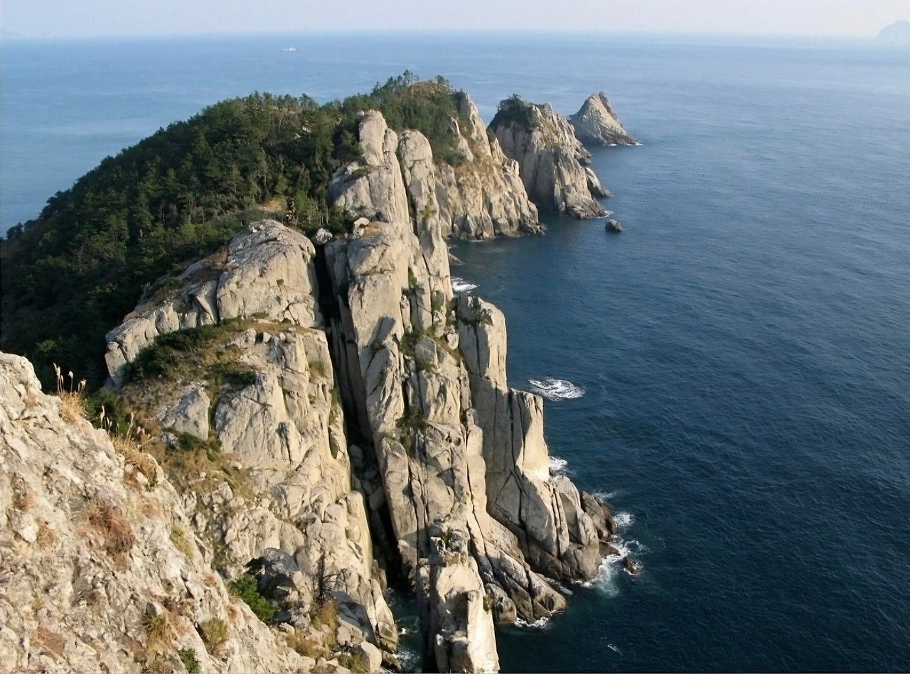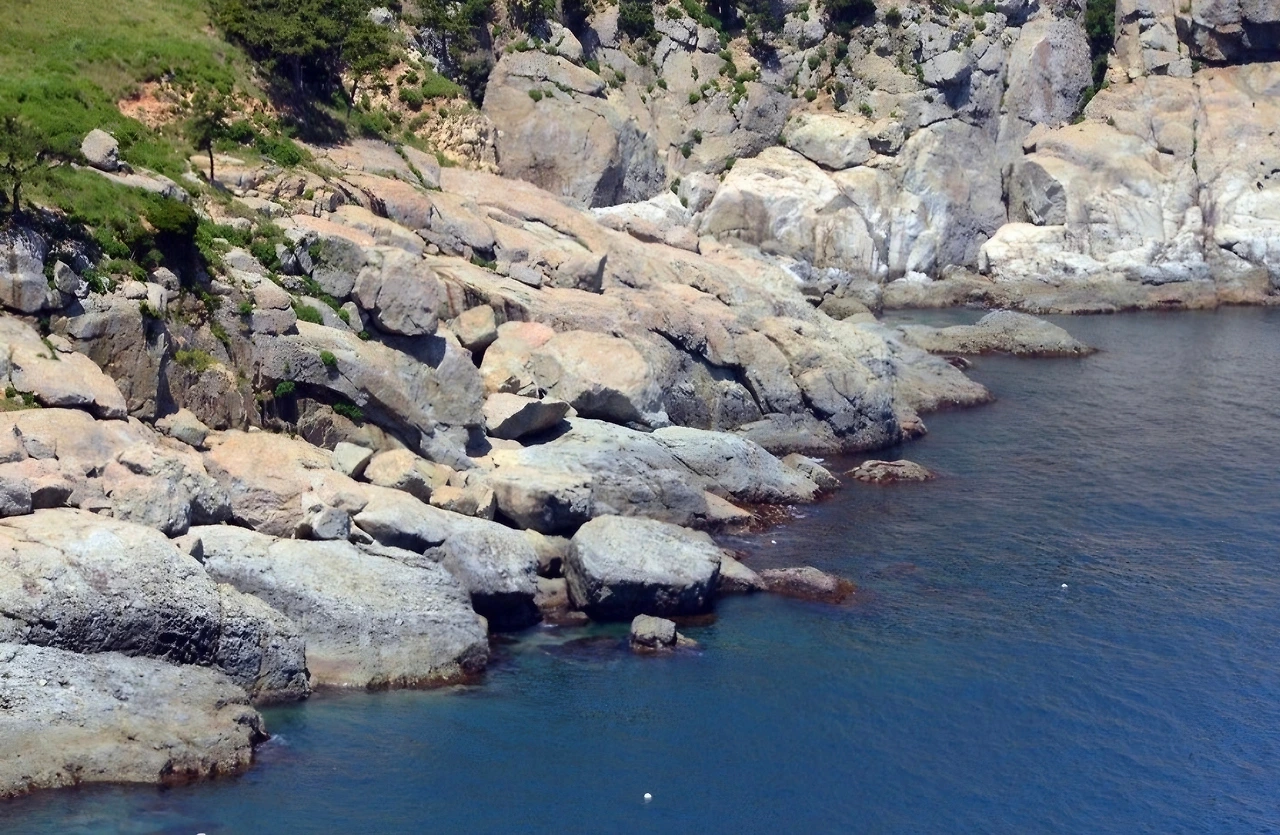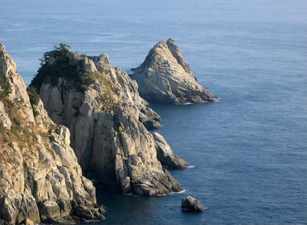 바다를 향해 뻗은 바위.