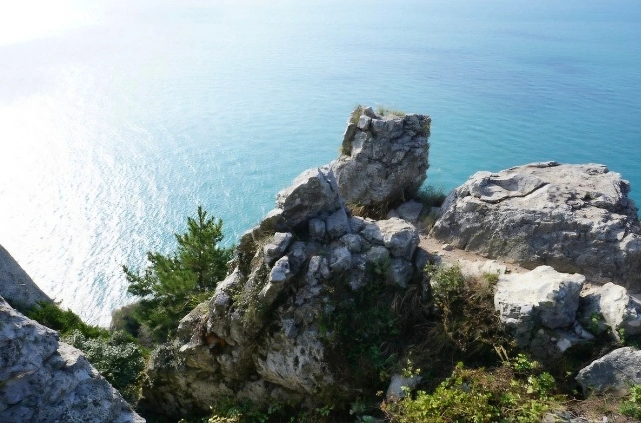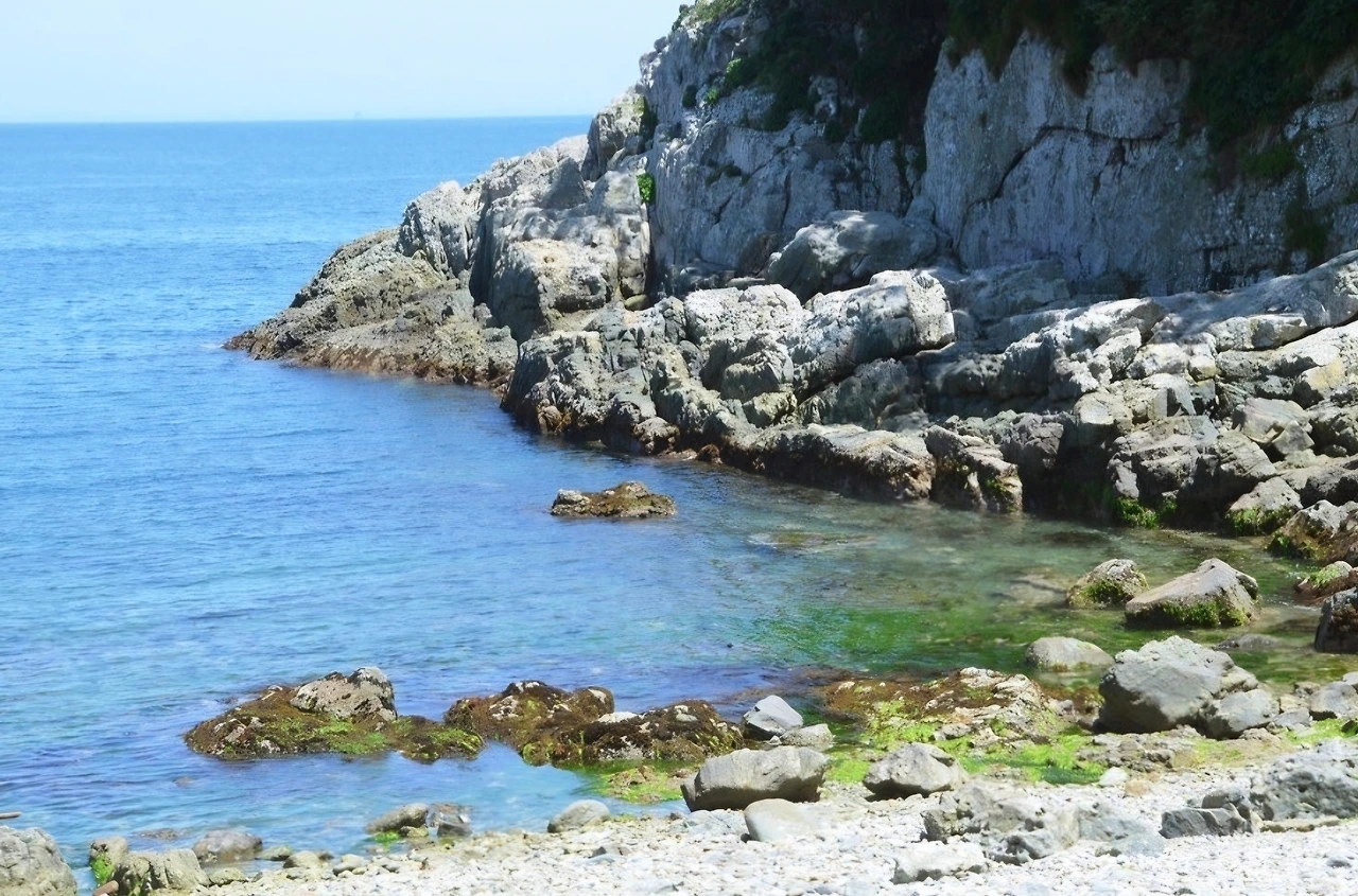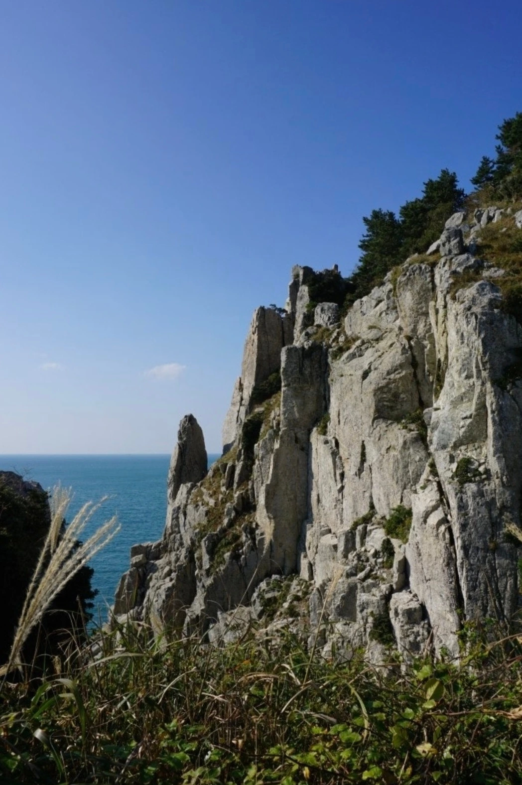 바다를 향해 뻗은 바위.
