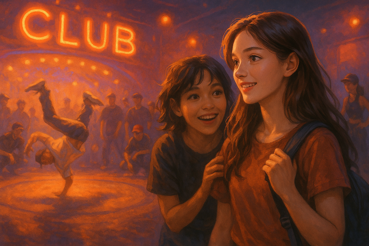비보이들과 비걸들이 만들어내는 리듬감 있는 몸짓은 여전히 달래의 눈에 아른거렸다. 휘황한 네온 아래, 그들의 움직임은 마치 음악을 눈으로 보는 듯했다.