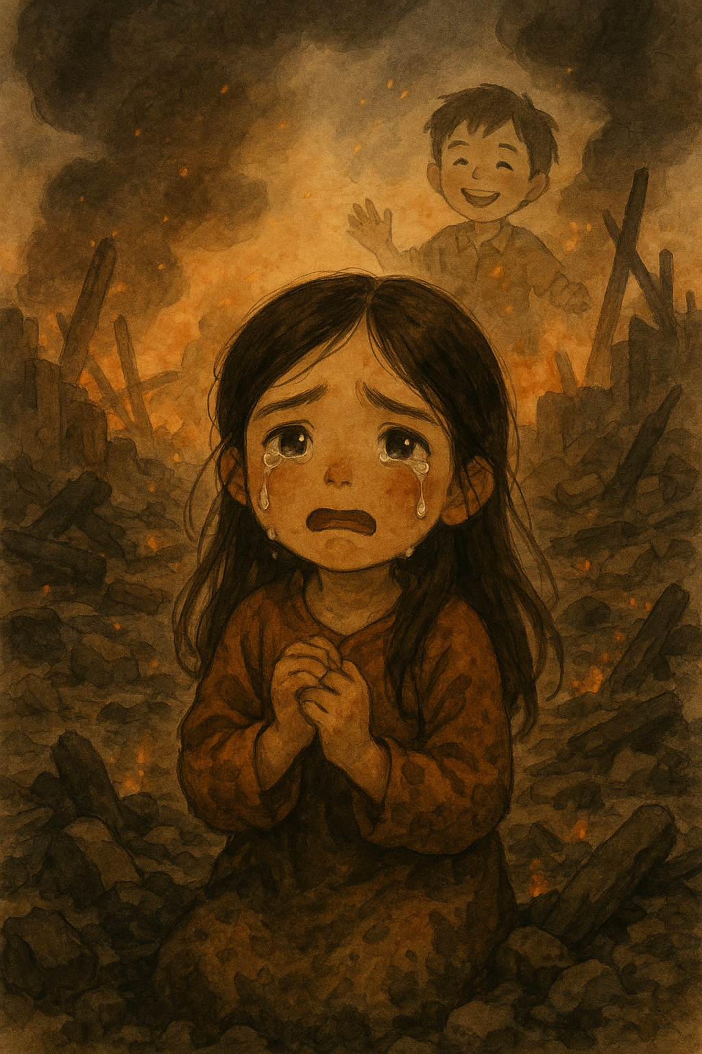 소녀가 뛰던 고무줄은 날아가 찢어졌고,