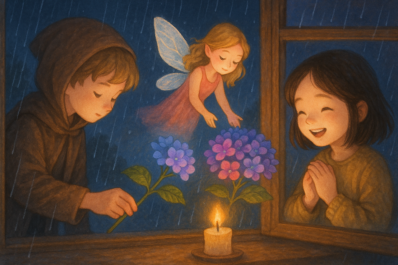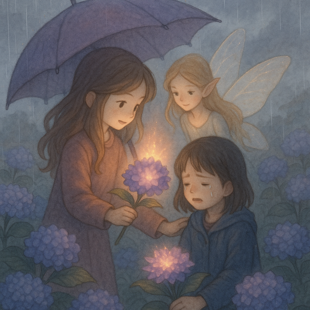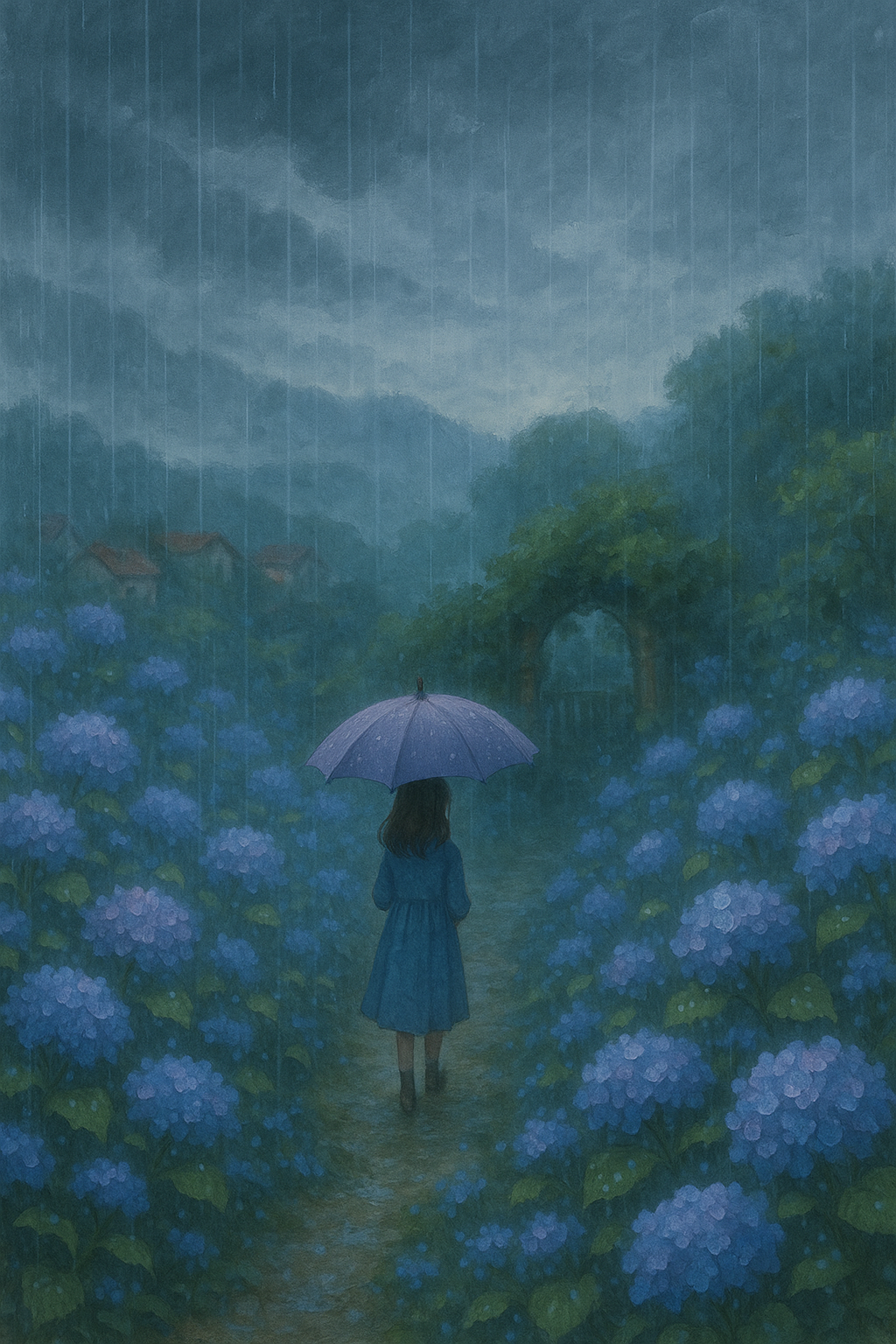 수국 꽃잎이 부드럽게 떨렸고, 그 속에서 조용히 소윤이의 기억 한 조각이 퍼져 나왔죠.